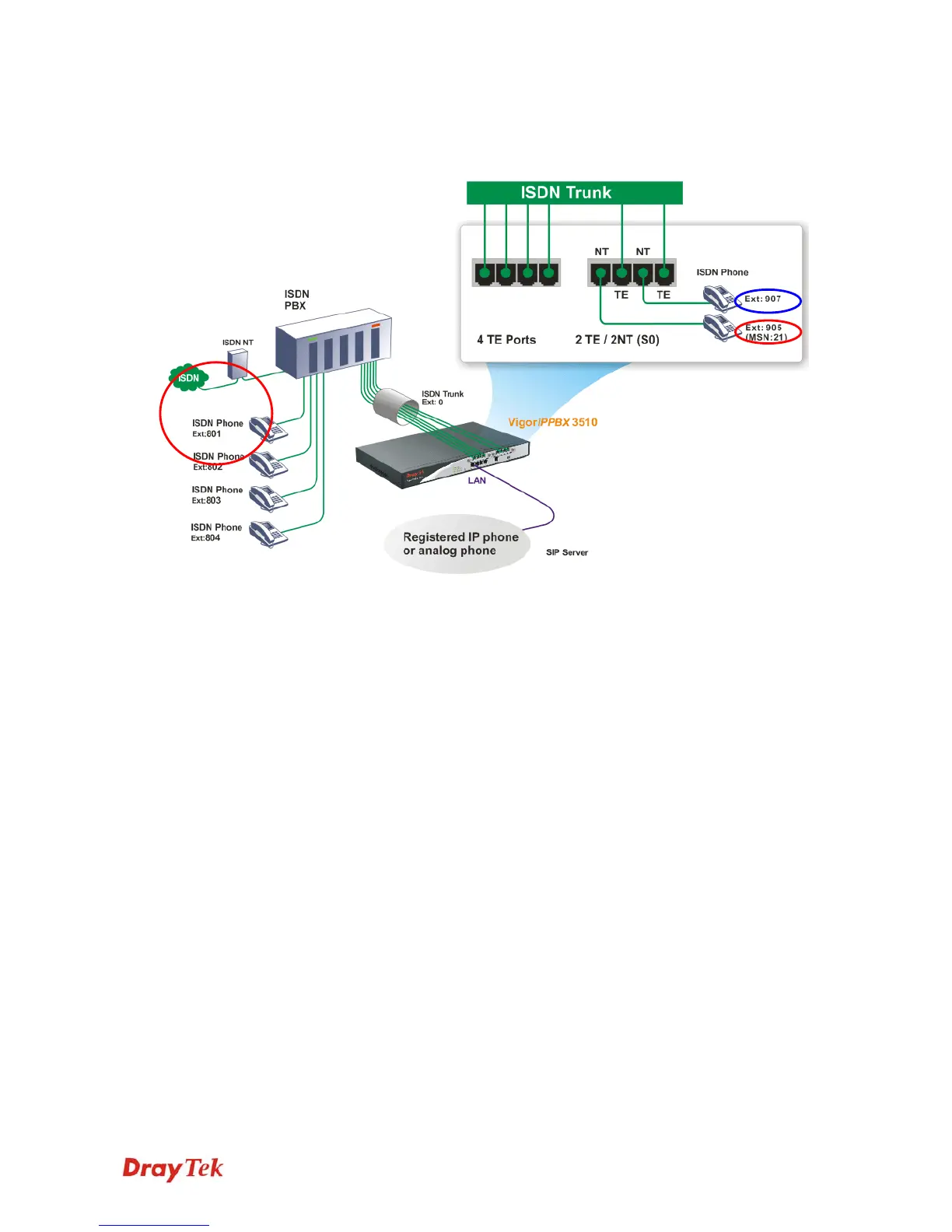 z The ISDN phone with ext. 907 (without MSN number) on VigorIPPBX 3510 made a