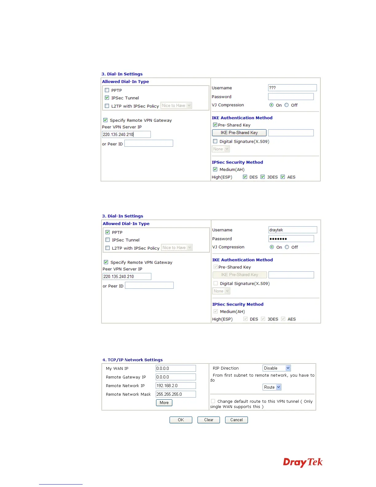 Address, IKE Authentication Method and IPSec Security Method for this Dial-In