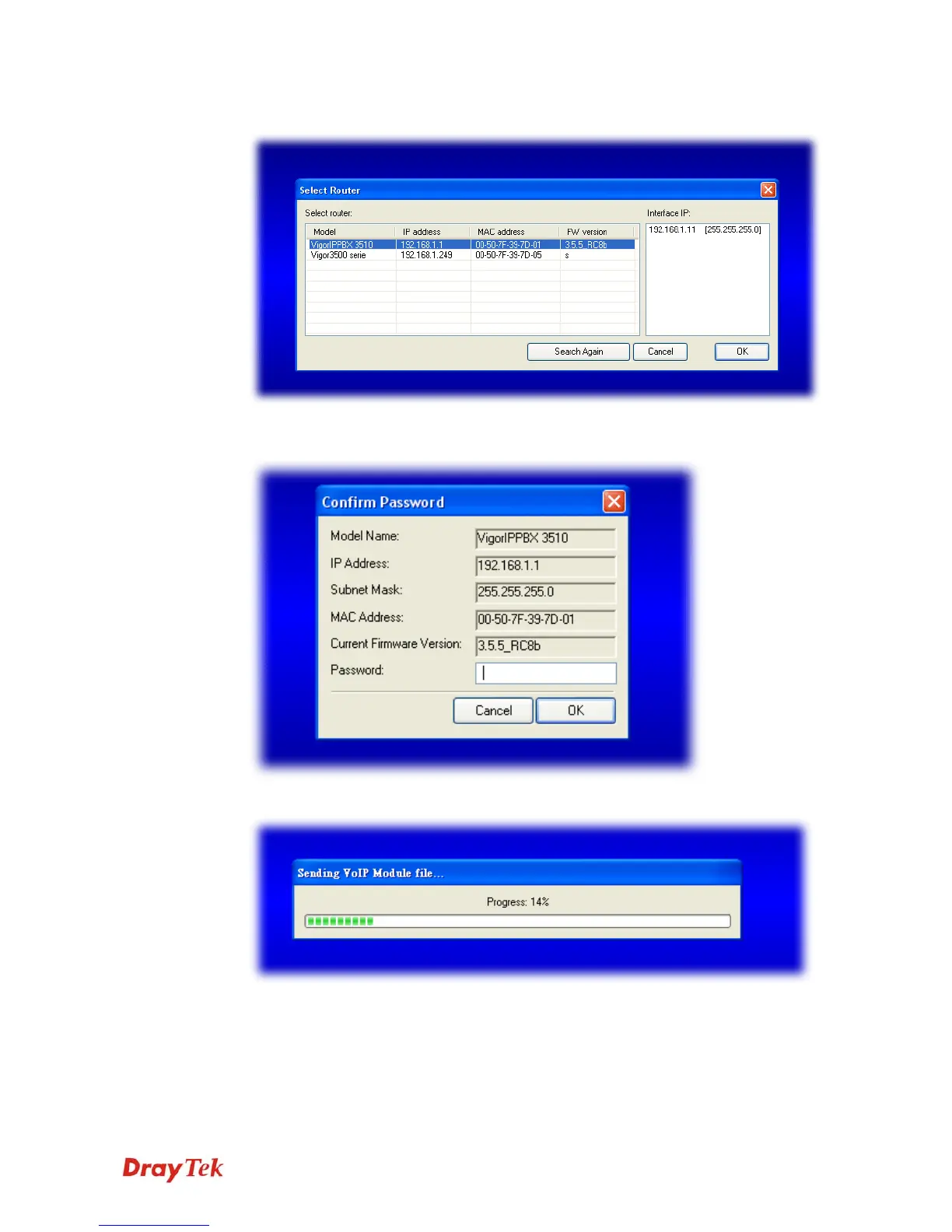 5. In the dialog of Select Router, choose VigorIPPBX 3510 and click OK.