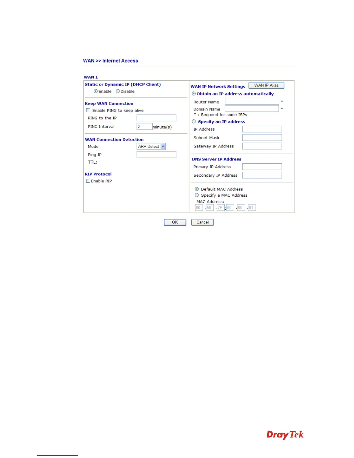 or Dynamic IP mode from Internet Access menu. The following web page will be shown.