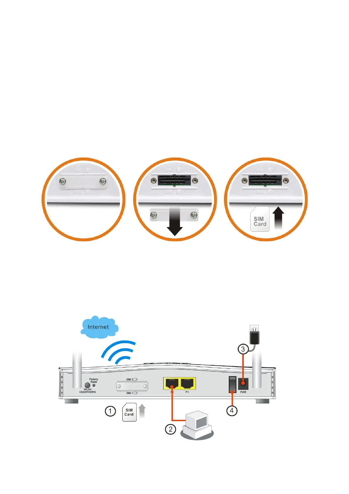 1. Install the SIM card into the card slot. The back plate of the SIM card slot
