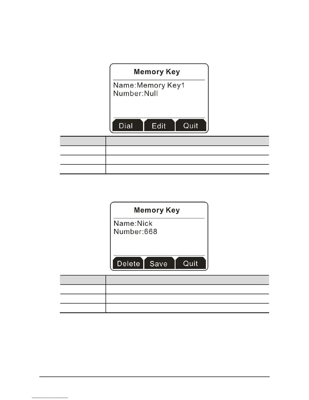1. Click one of the memory keys you want. In default, all the telephone numbers will be displayed with