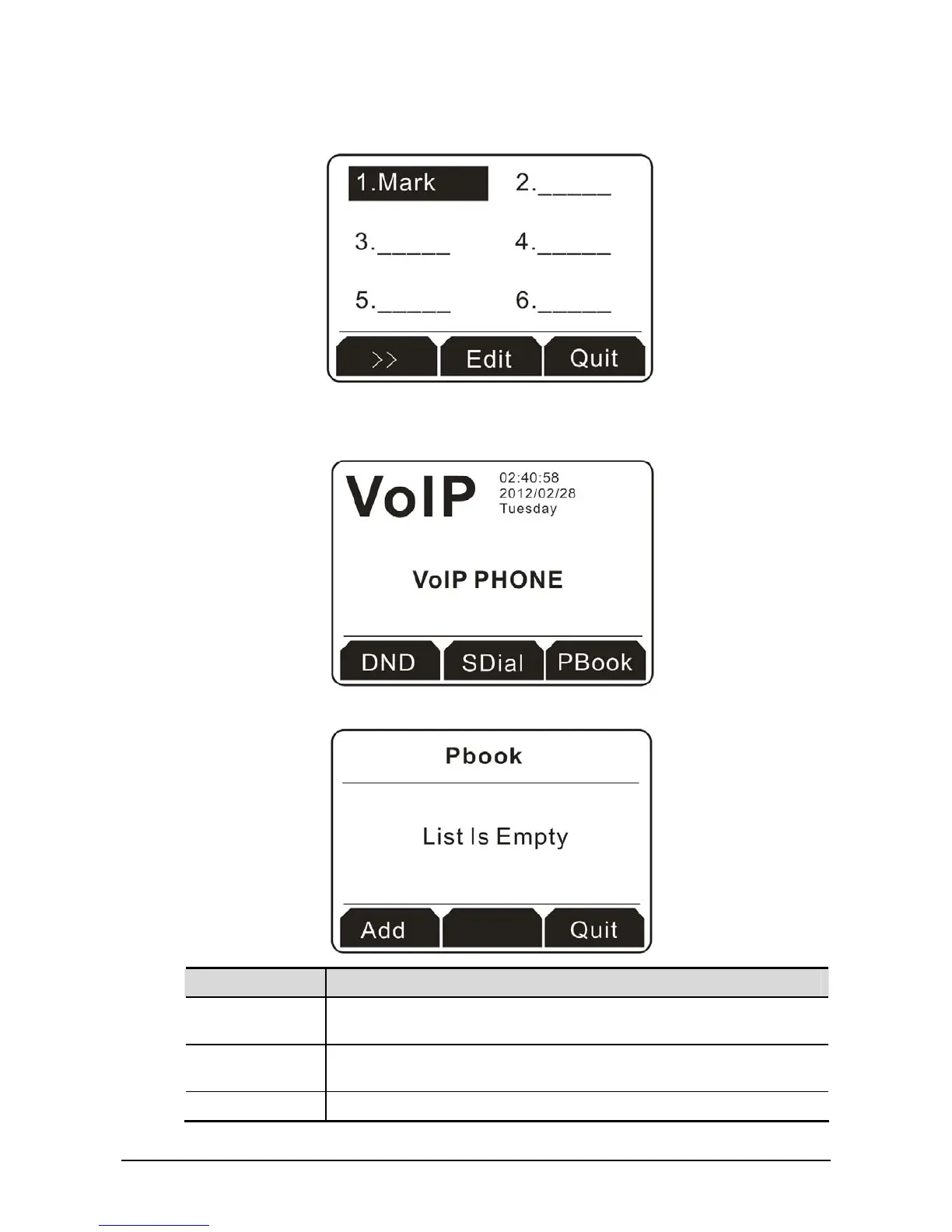 1. Press the soft key under PBook to access into the configuration page.