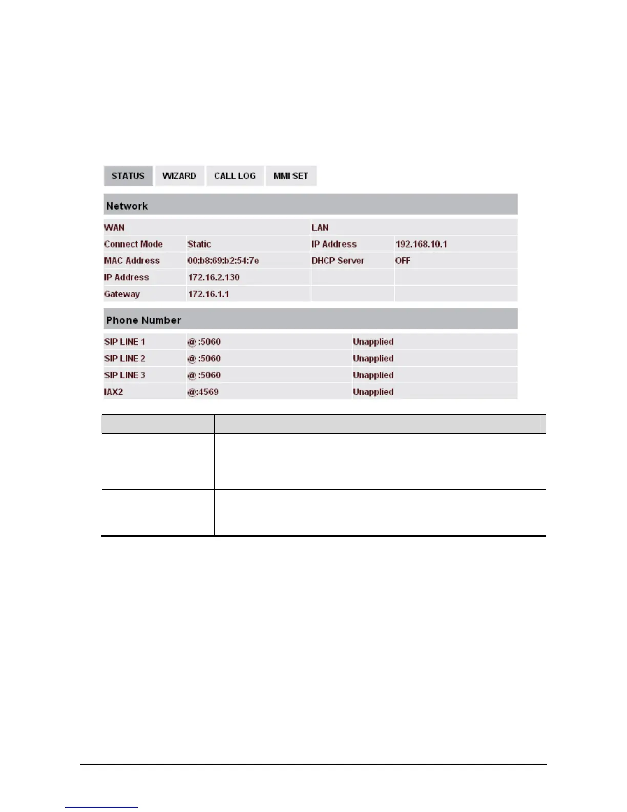 Phone Number Shows the phone numbers provided by the SIP LINE 1-3 servers and