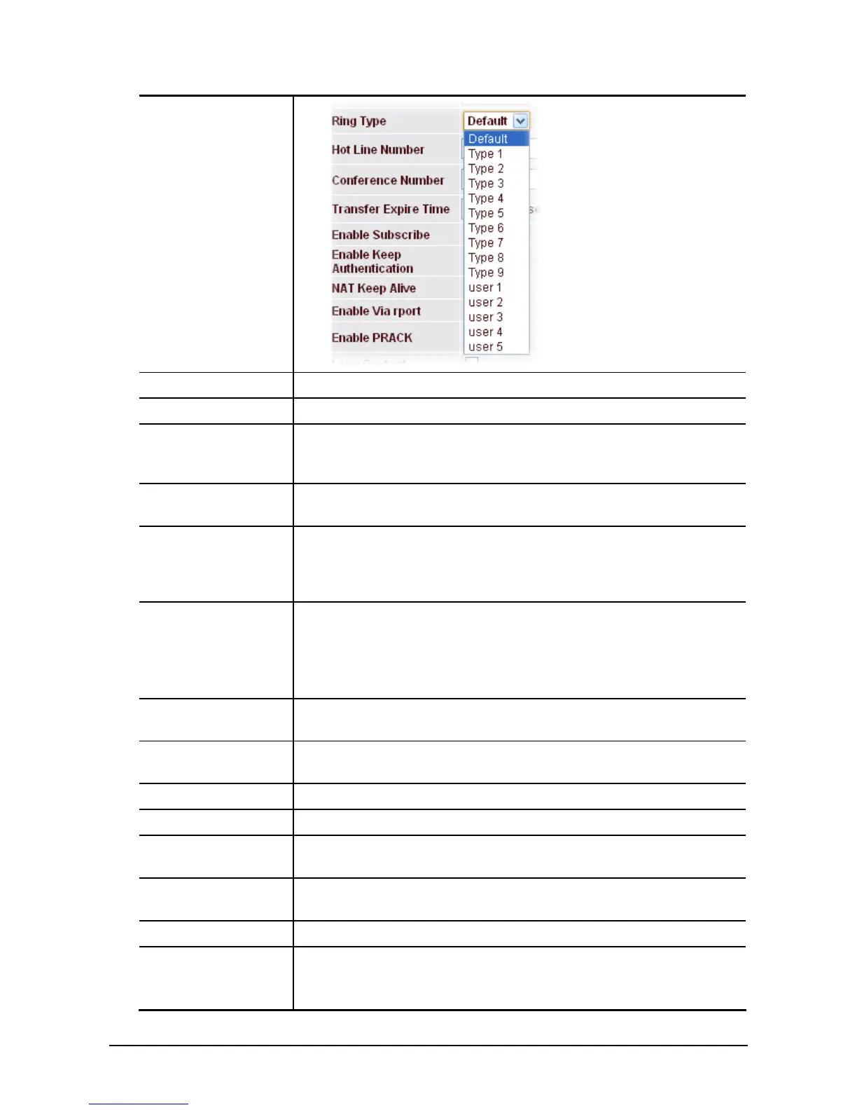 Enable PRACK Enable or disable SIP PRACK function, suggest use the default