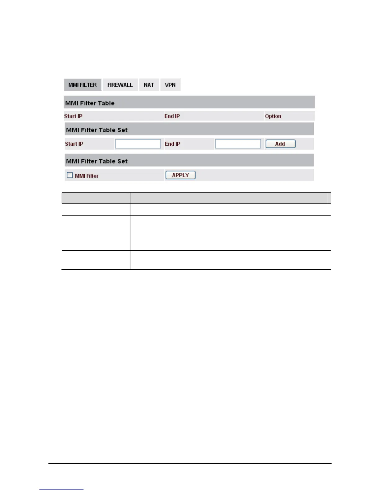 Do not set your visiting IP outside the MMI filter range, otherwise, you can not logon through the web.