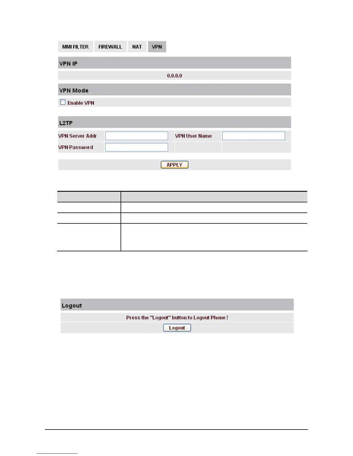 VPN Mode Enable VPN - Select it or not to enable or disable VPN.