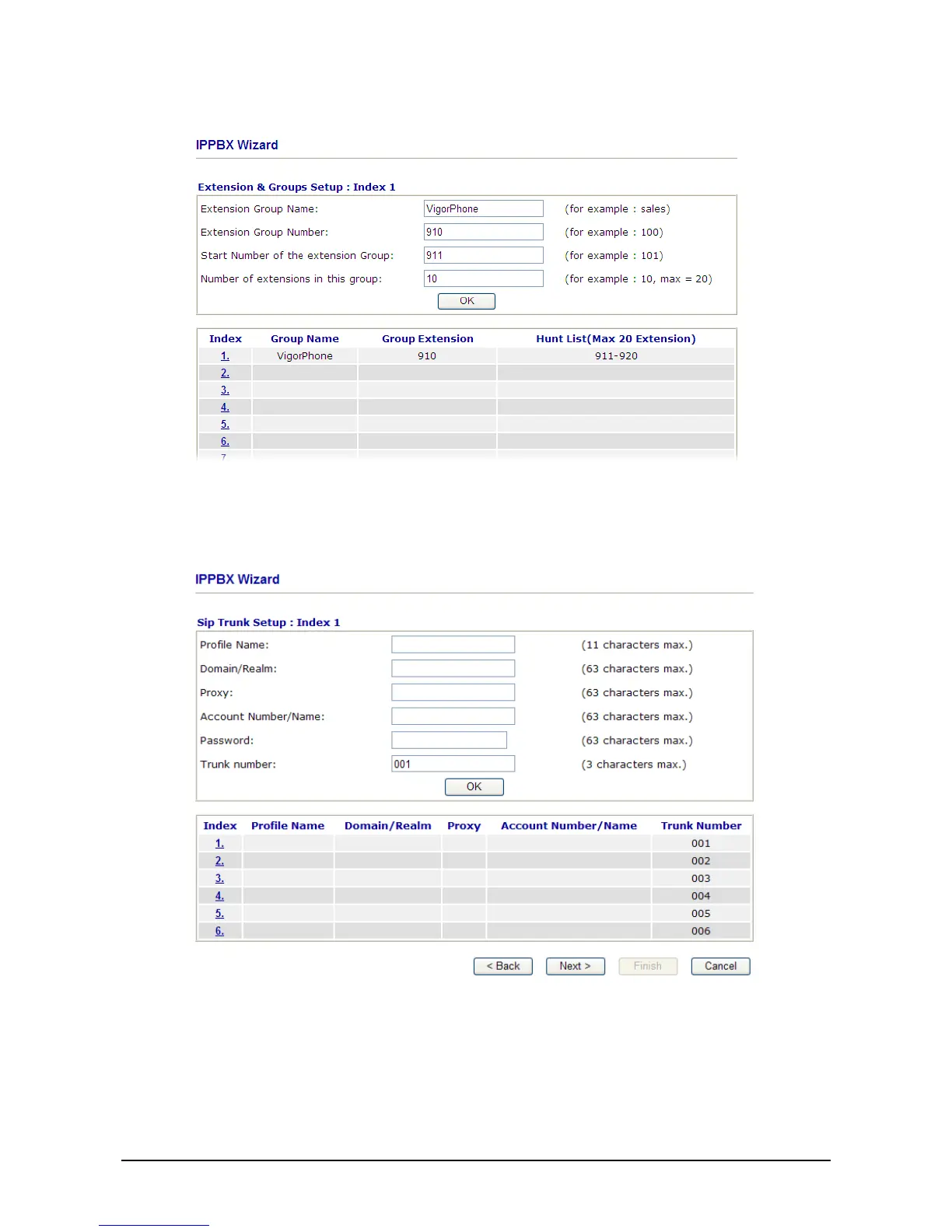 4. In the SIP Trunk Setup page, you can set up to six SIP profiles outside lines at one time.