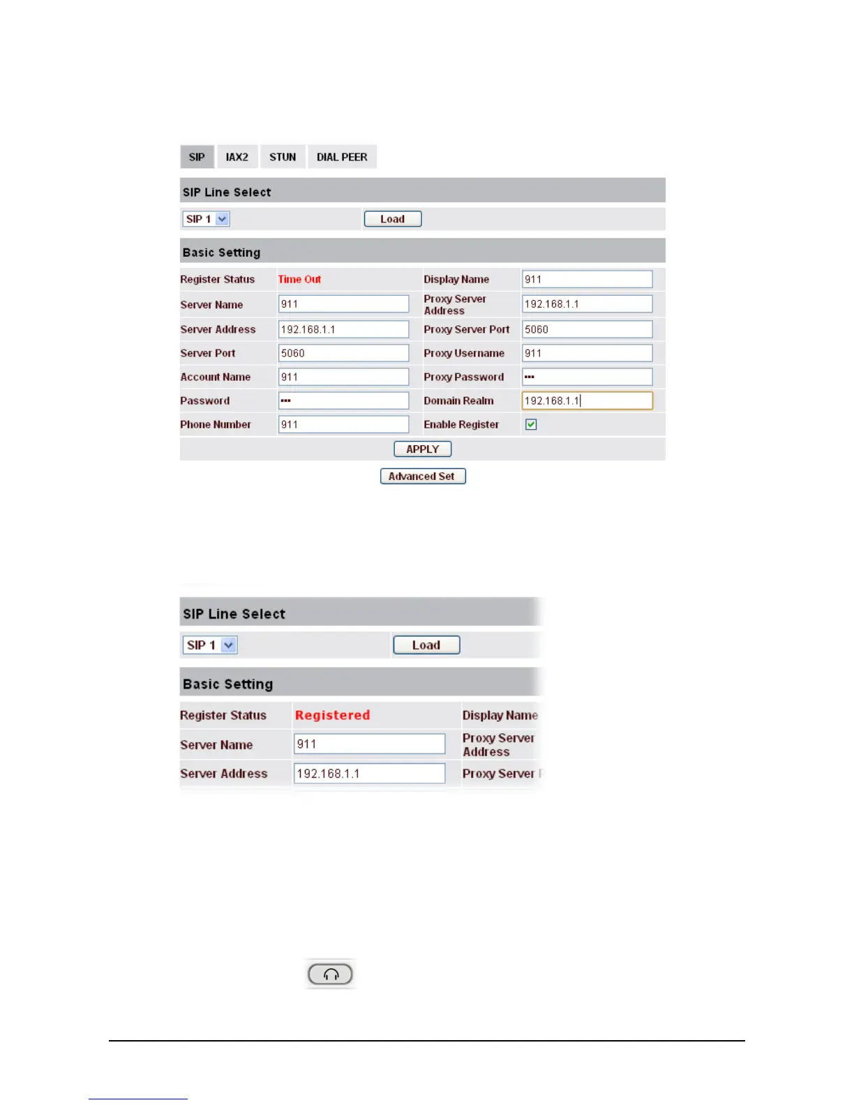 15. Later, if Register Status display “Registered”, that means the extension number for VigorPhone