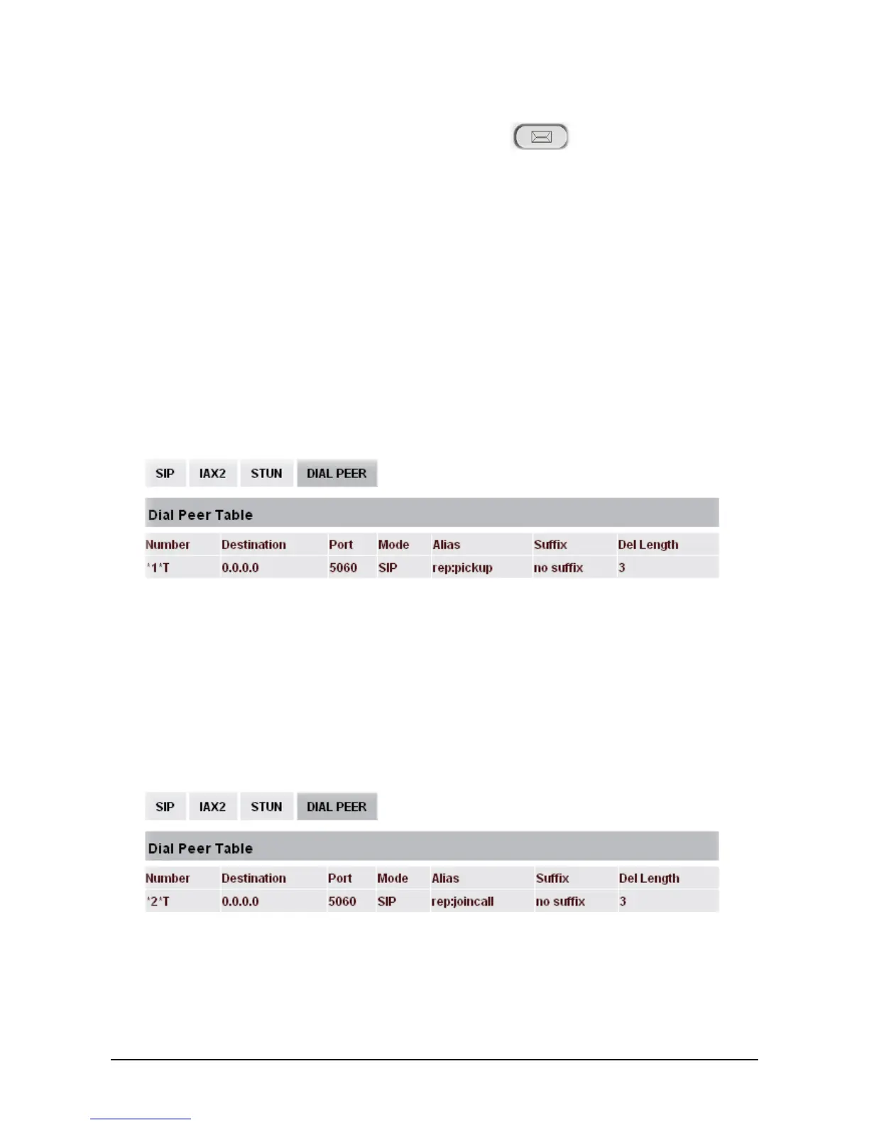The following chart shows how to configure an appointed prefix in dial peer to have join call function.
