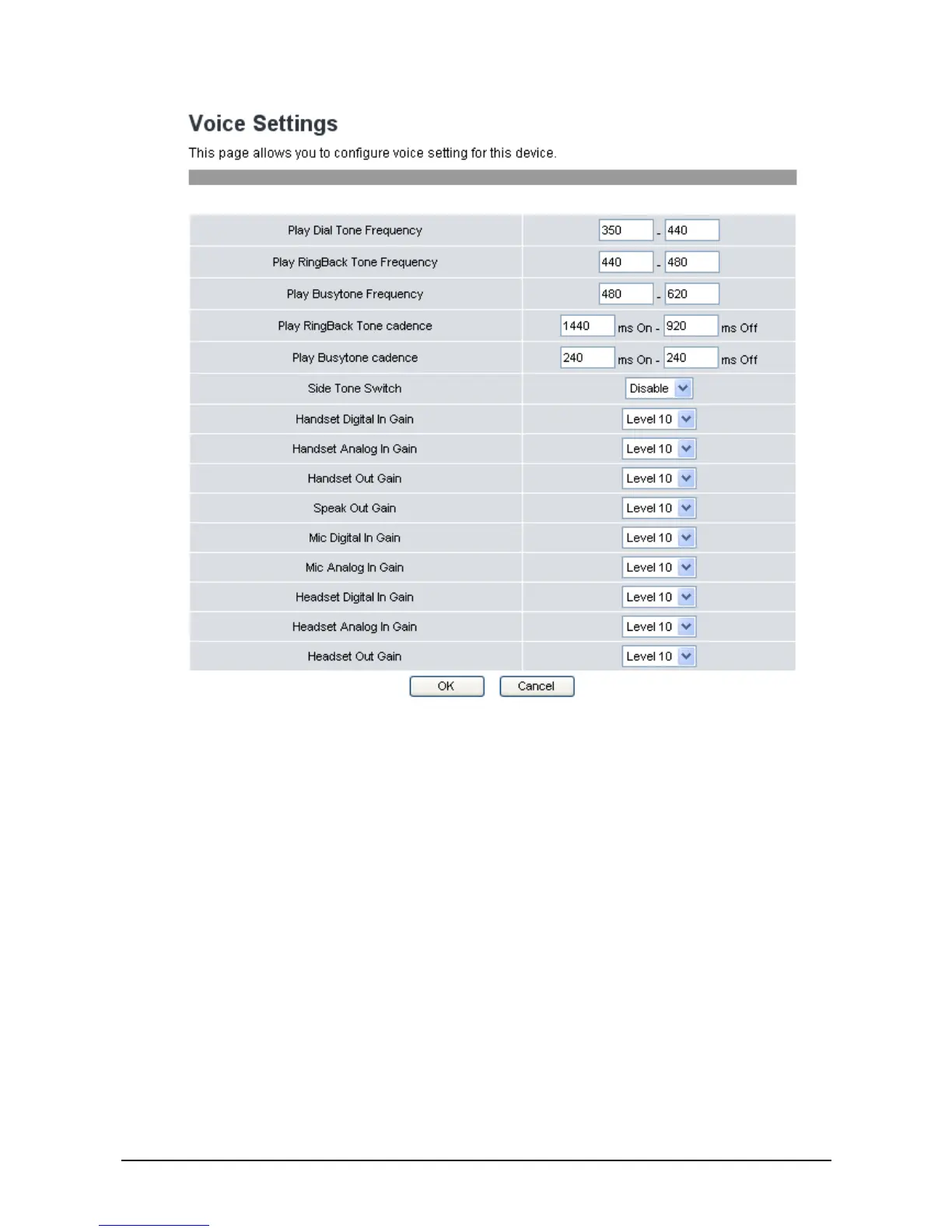 Handset Out Gain: Set the volume sent out from the handset from Level 1-20. Default is