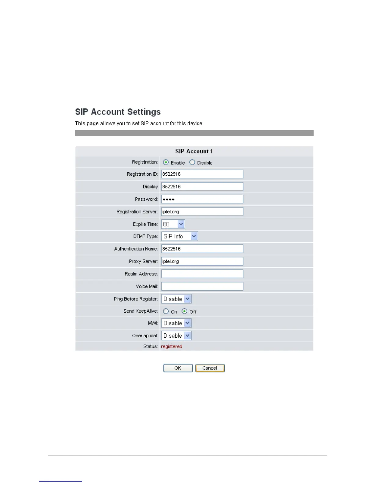 To edit an SIP account setting, do the following: