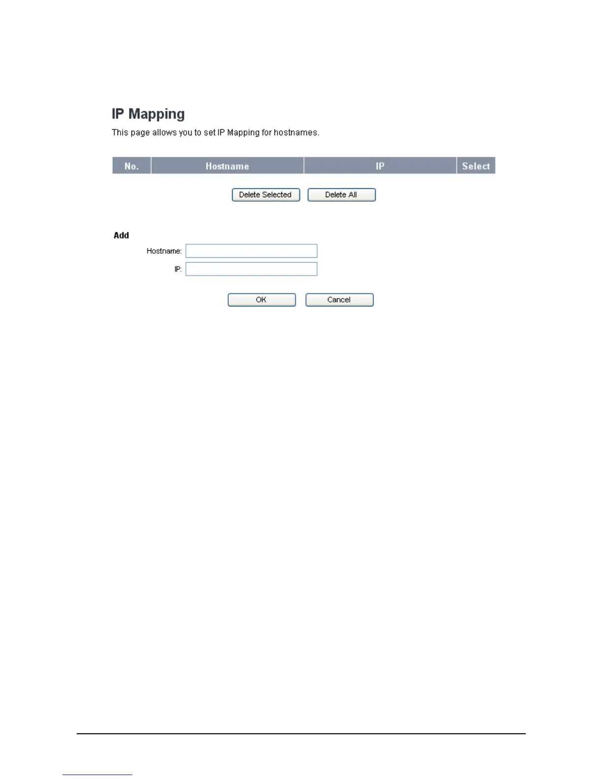 2. Click Delete Selected to delete the checked item or click Delete All to delete all hostnames.
