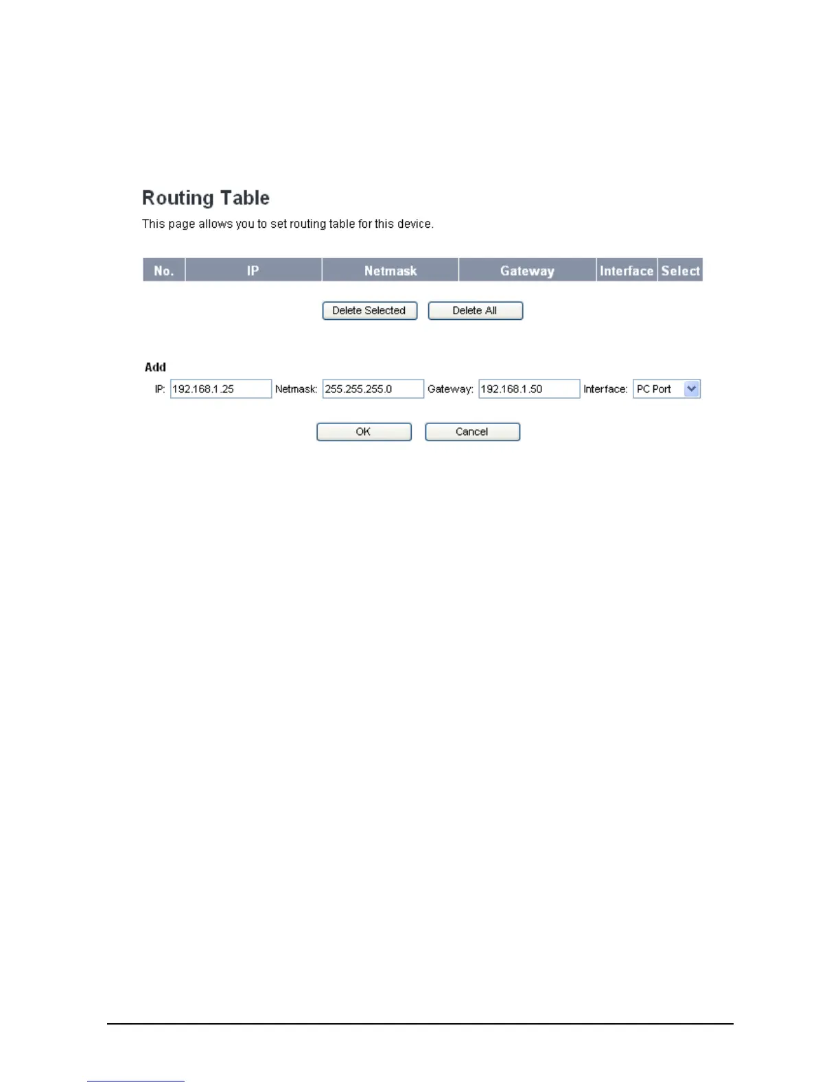 2. Click Delete Selected to delete the checked item or click Delete All to delete all routing tables.