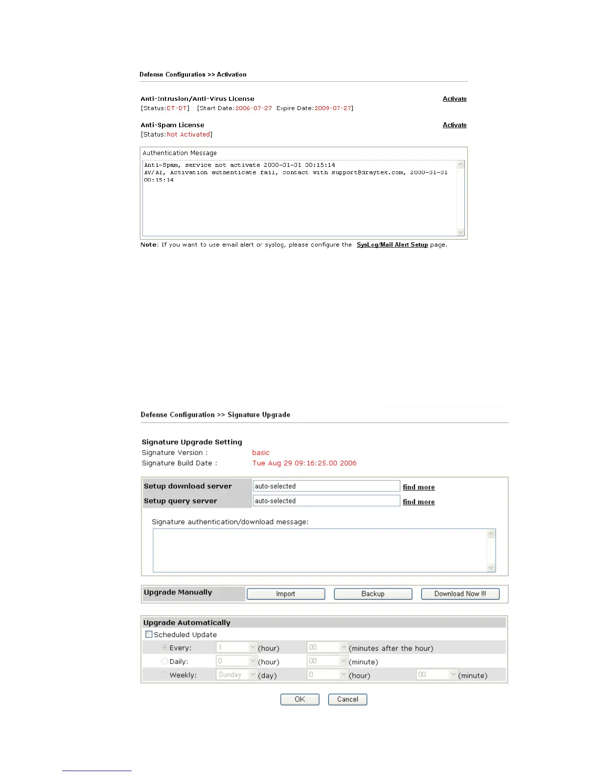 You can get the most updated signature from DrayTek’s server if the license key of