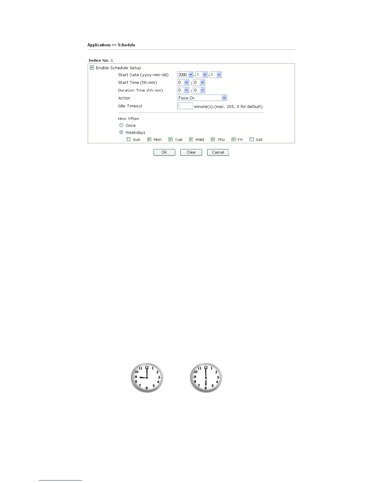 Idle Timeout Specify the duration (or period) for the schedule.