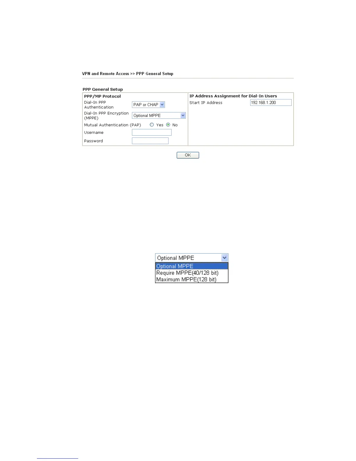 Maximum MPPE - This option indicates that the router will