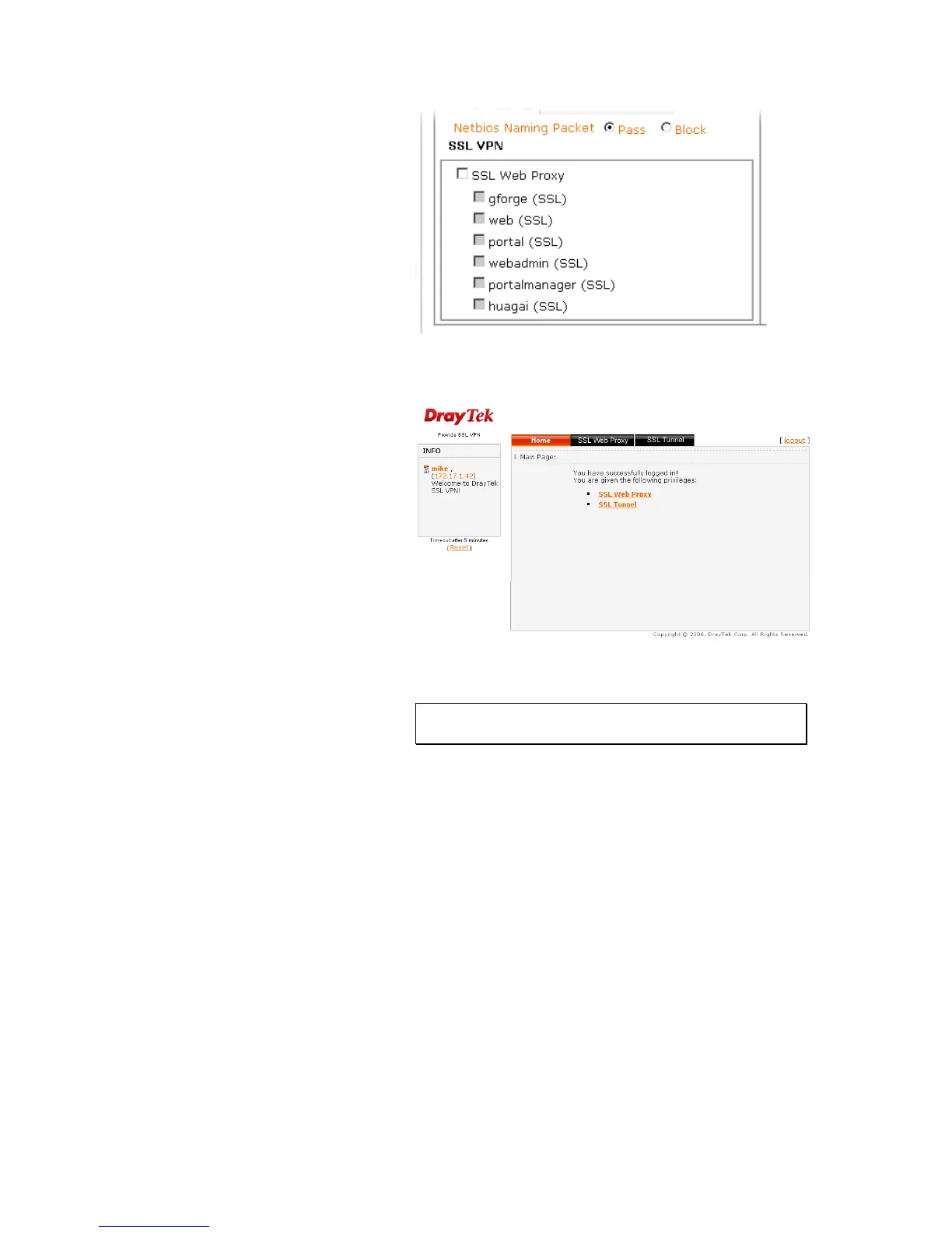 Draytek SSL VPN portal interface. From the web page, you