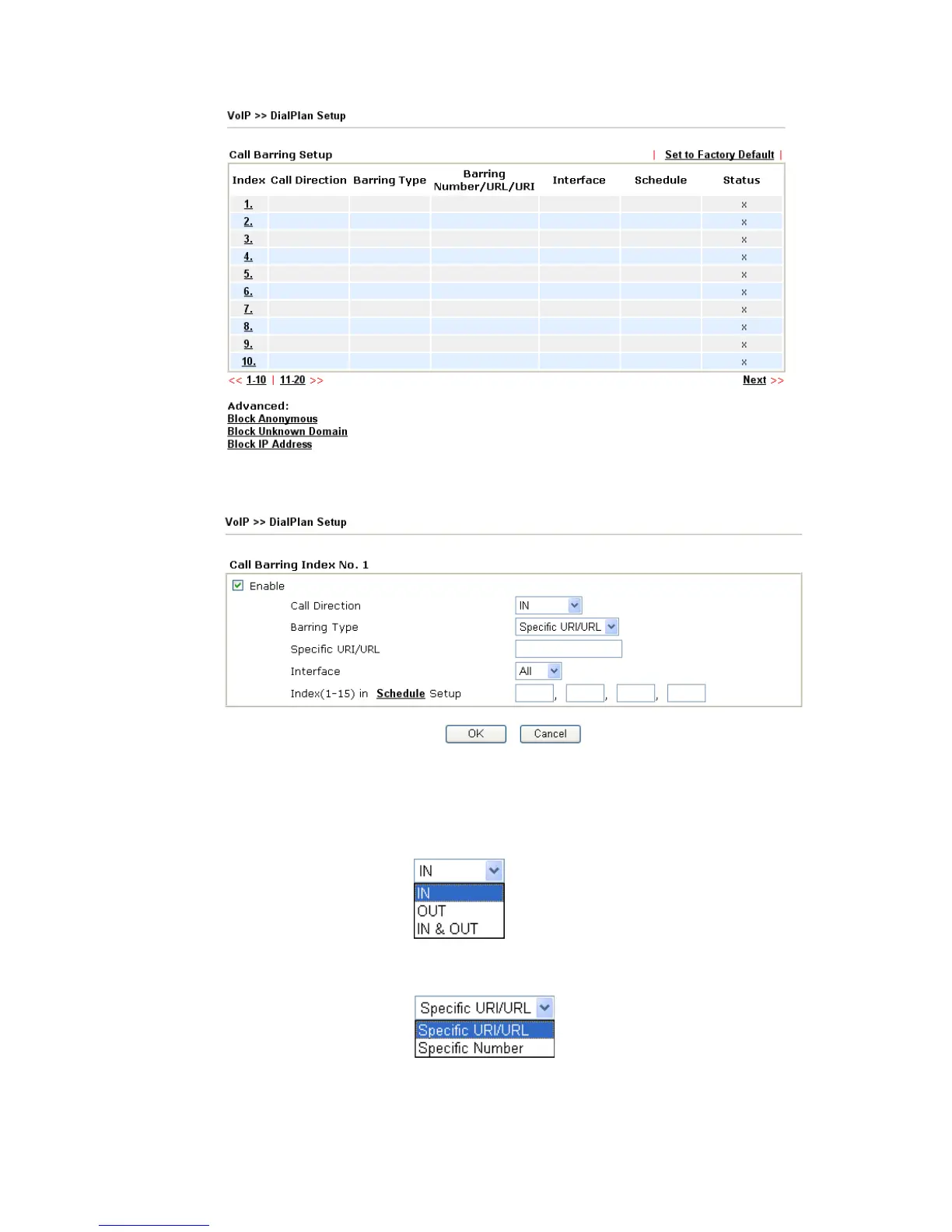 Barring Type Determine the type of the VoIP phone call, URI/URL or