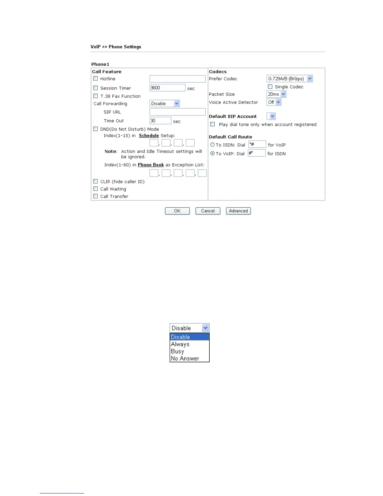 Time Out – Set the time out for the call forwarding. The