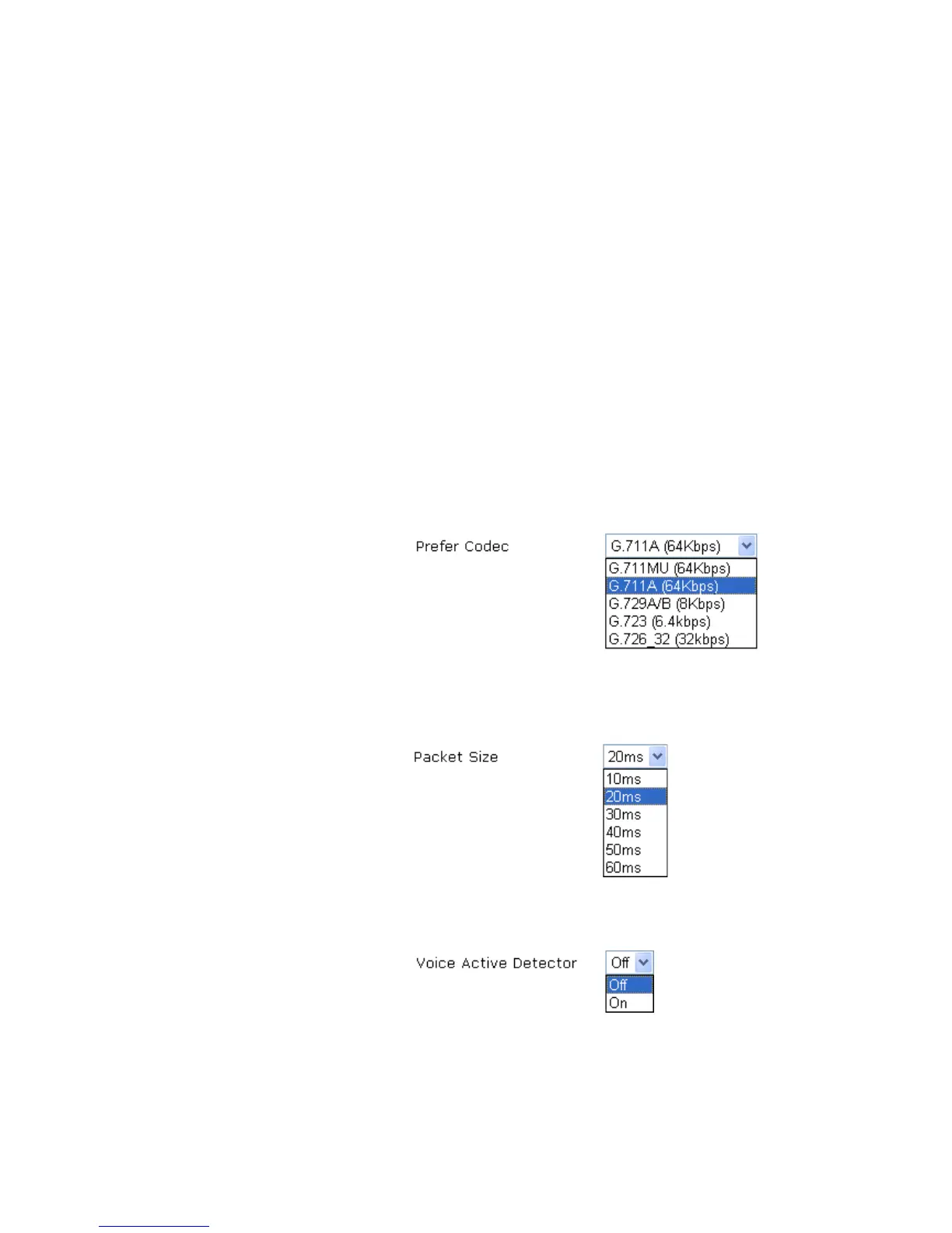 Prefer Codec Select one of five codecs as the default for your VoIP calls.
