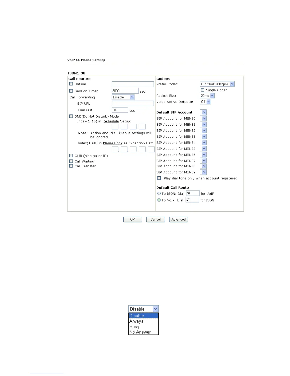 Call Forwarding There are four options for you to choose. Disable is to close
