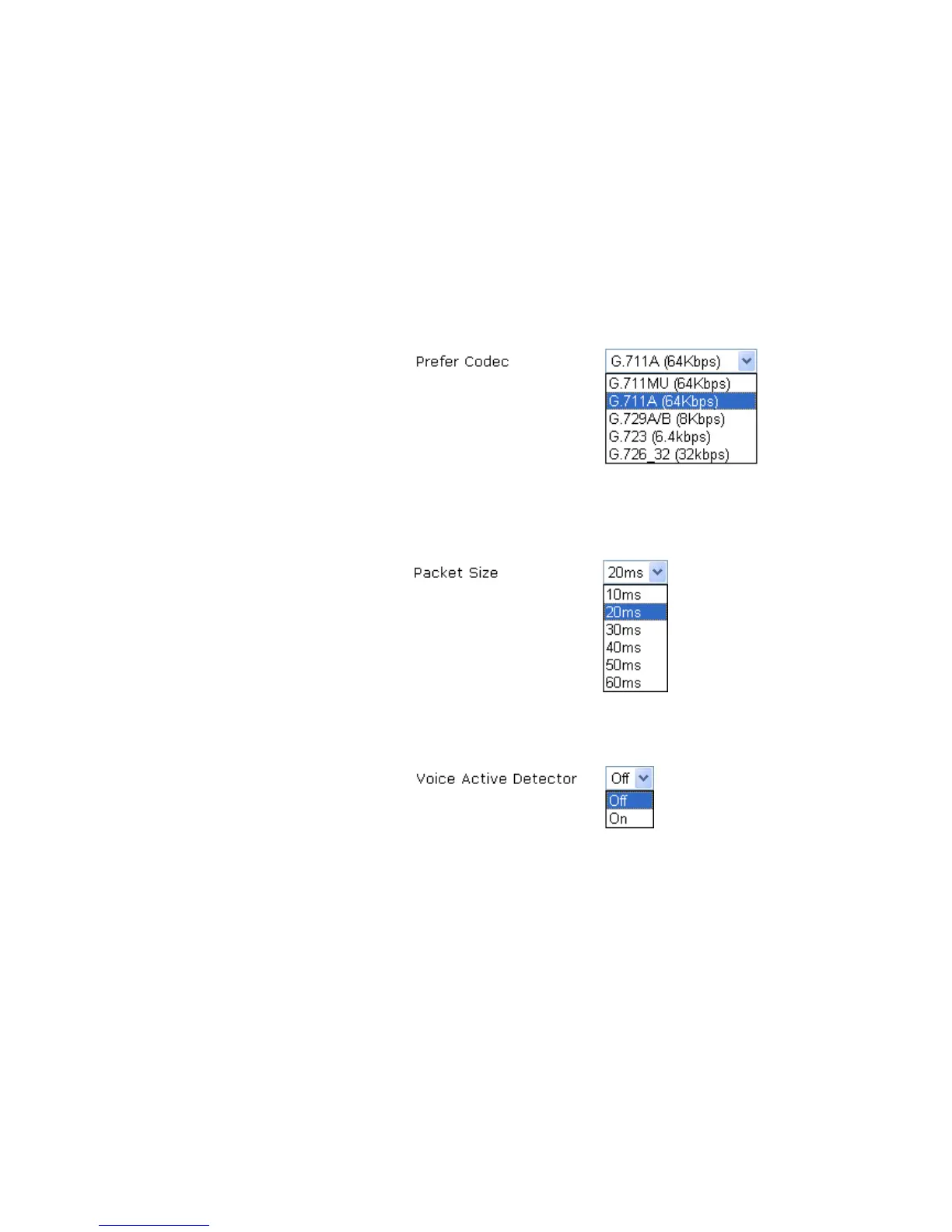Prefer Codec Select one of five codecs as the default for your VoIP calls.