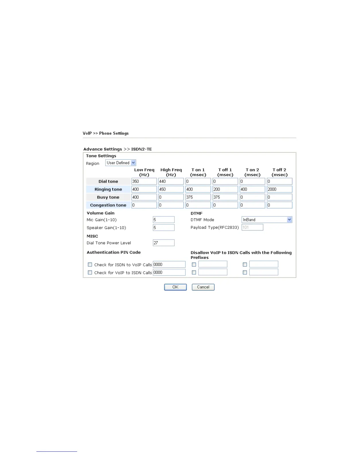 MISC and DTMF mode. Advanced setting is provided for fitting the telecommunication
