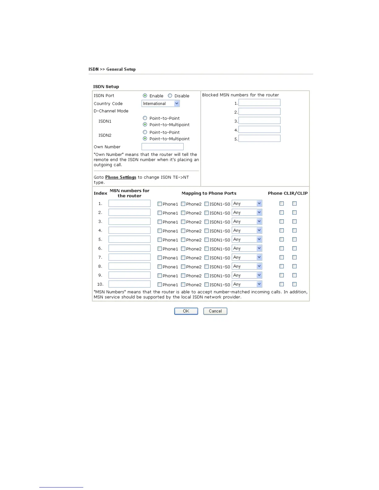 Own Number Enter your ISDN number that you got from ISDN service