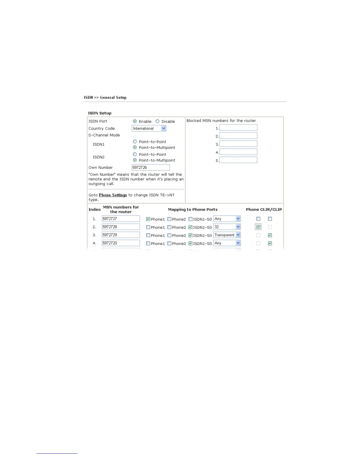 When remote user calls you by dialing 5972728, the router will make ISDN phone under