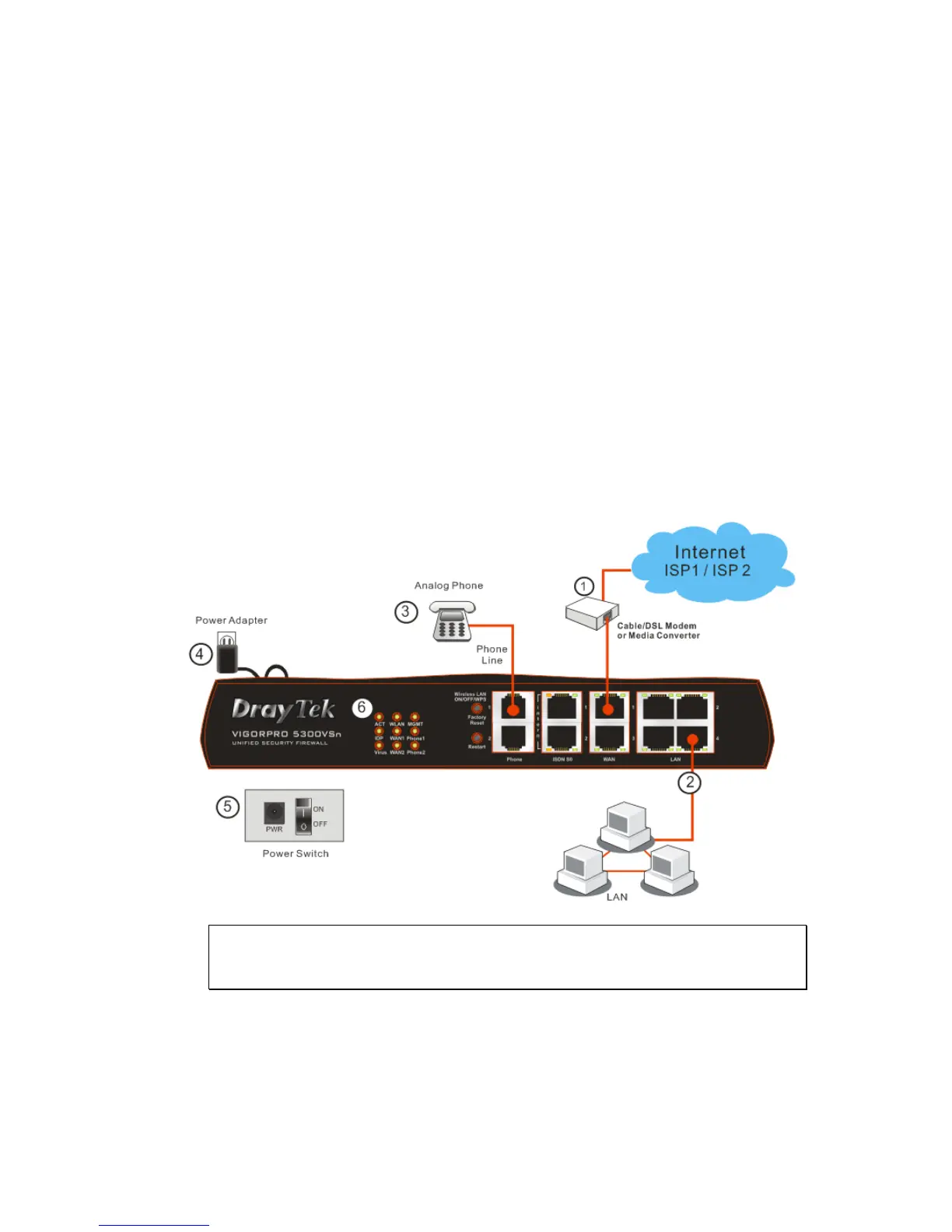 Caution: Each of the Phone ports can be connected to an analog phone only. Do