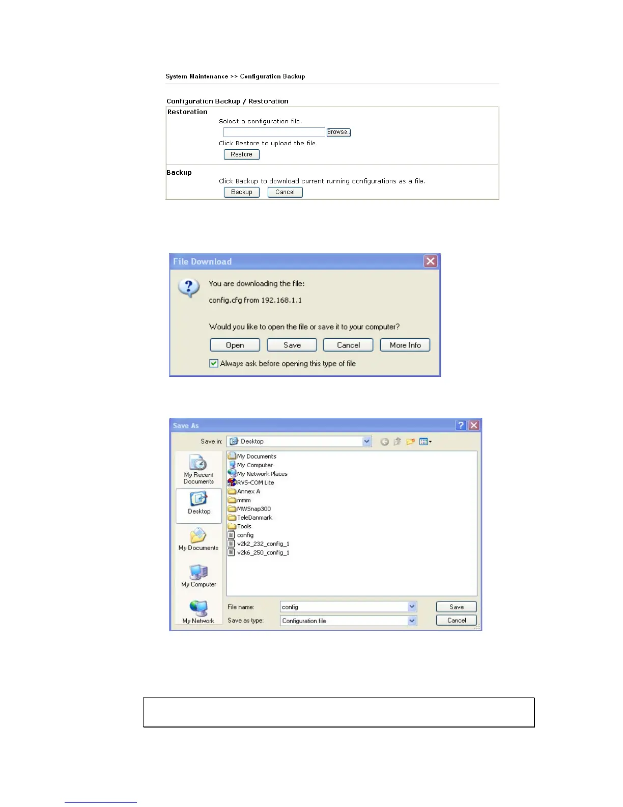 another dialog for saving configuration as a file.