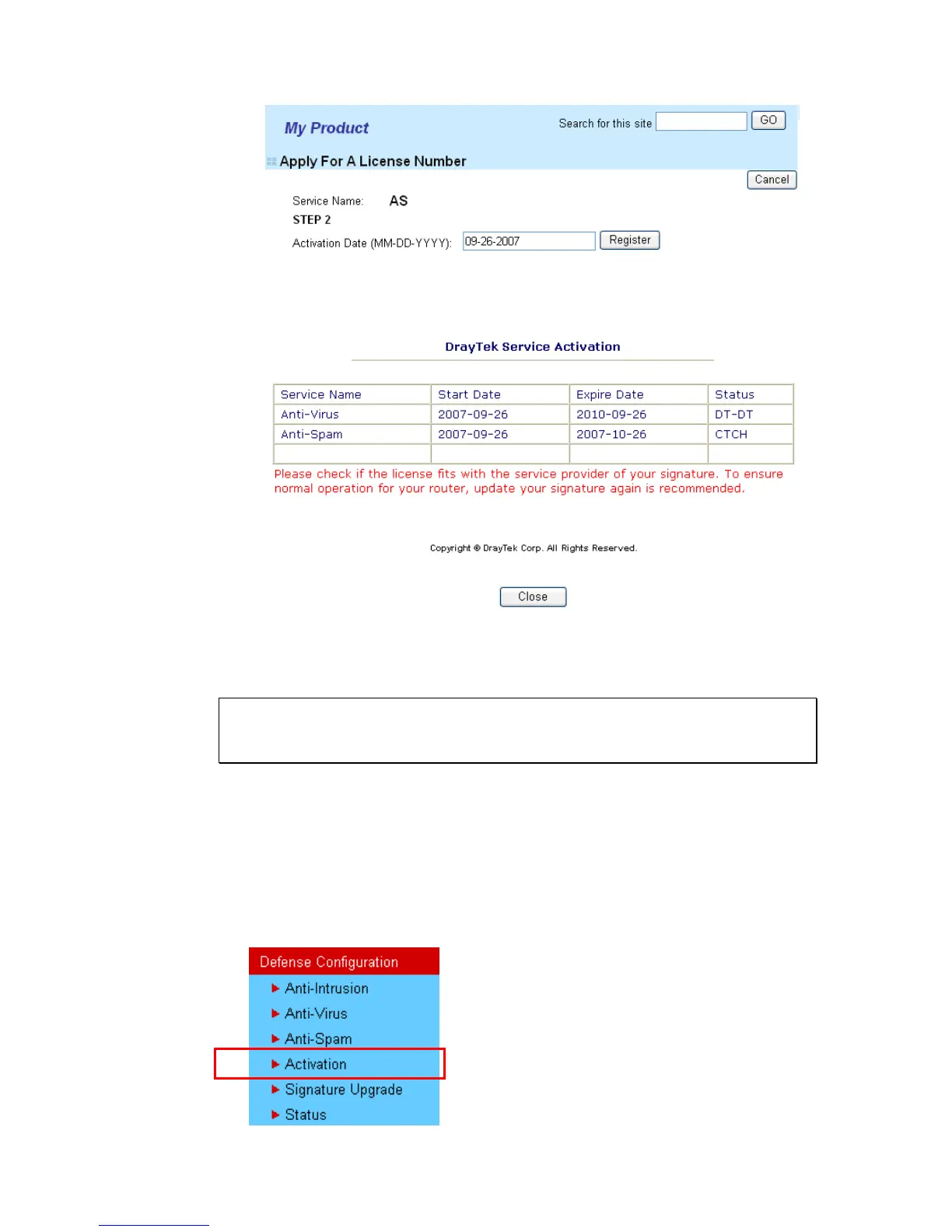 9. Next, the DrayTek Service Activation screen will be shown as the following.