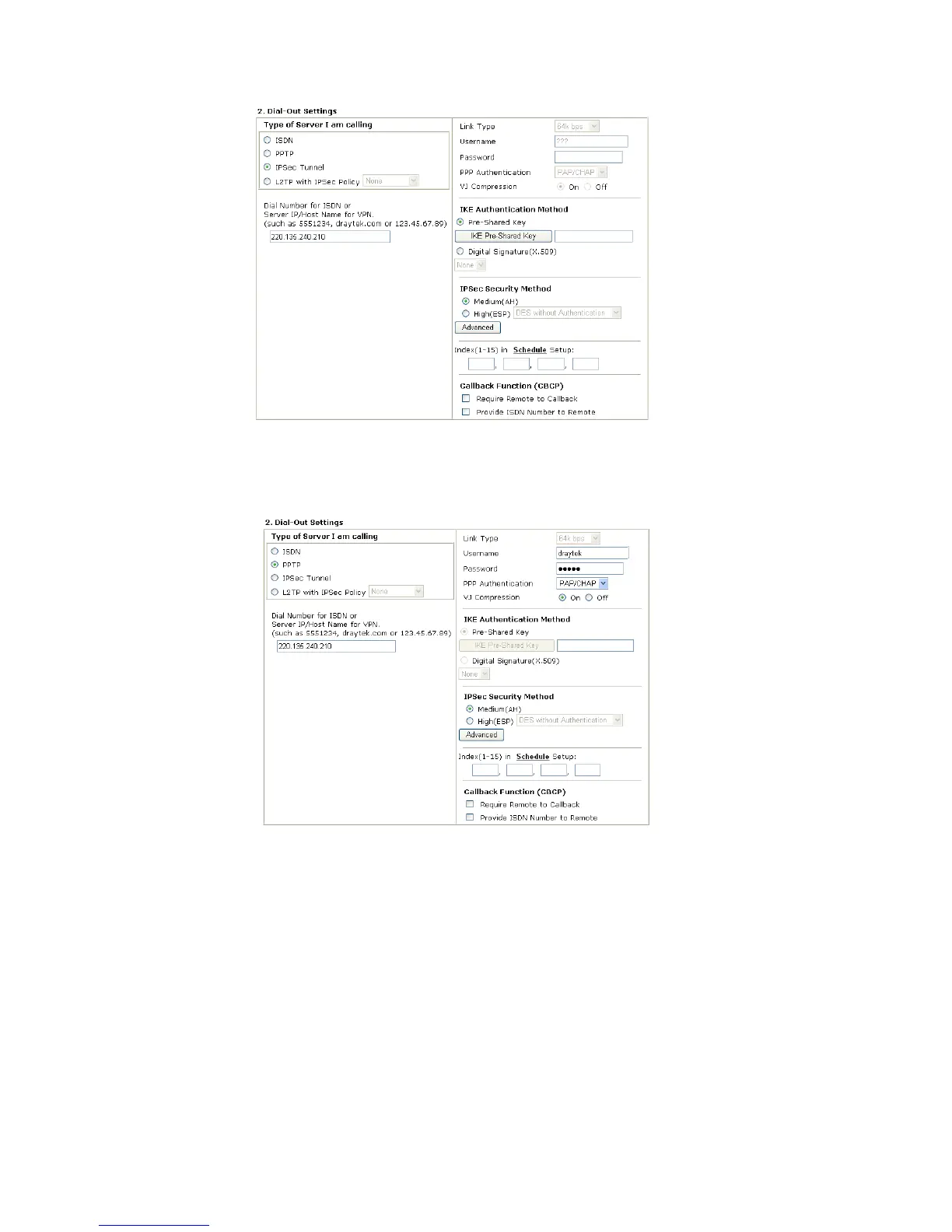 Address, IKE Authentication Method and IPSec Security Method for this Dial-In