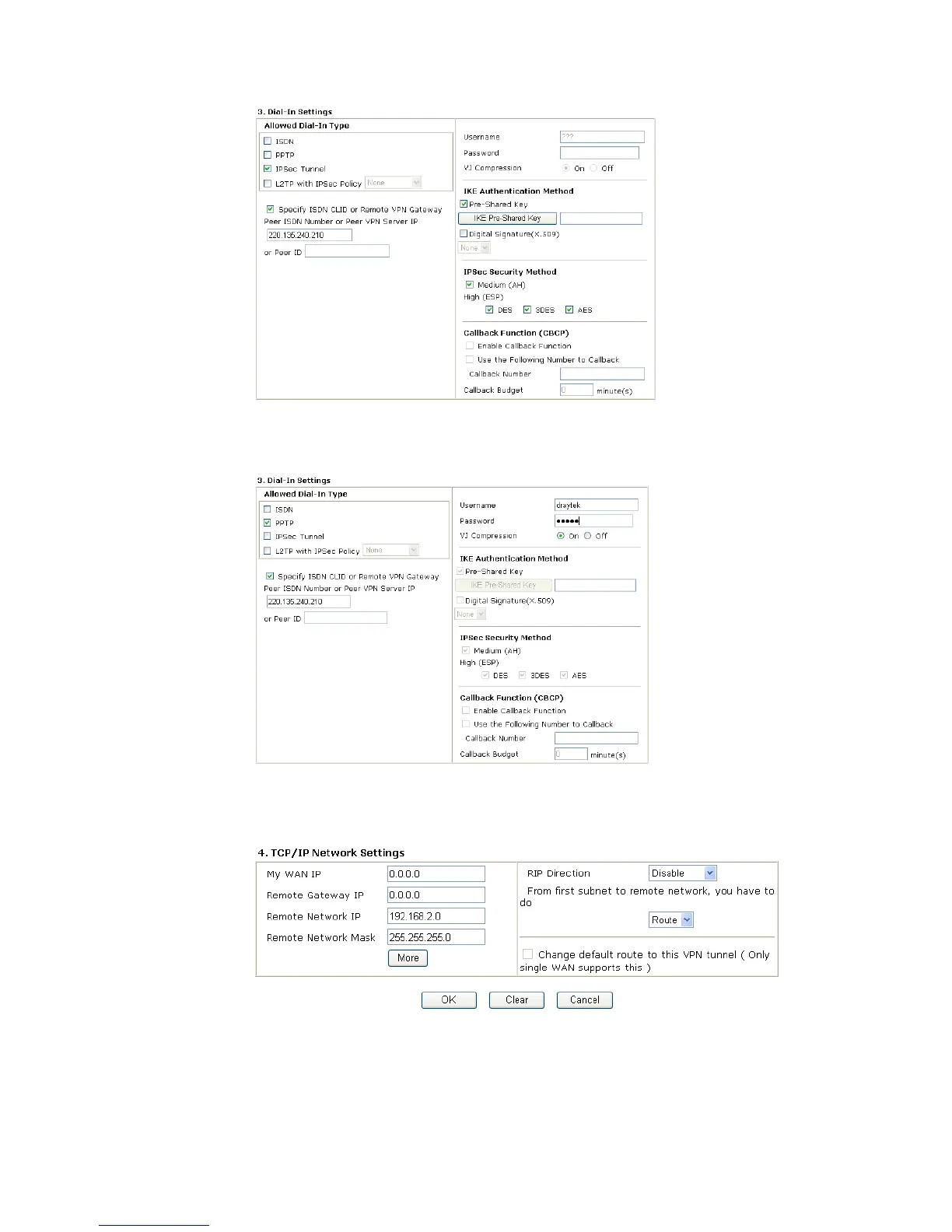 Address, Username, Password, and VJ Compression for this Dial-In connection.