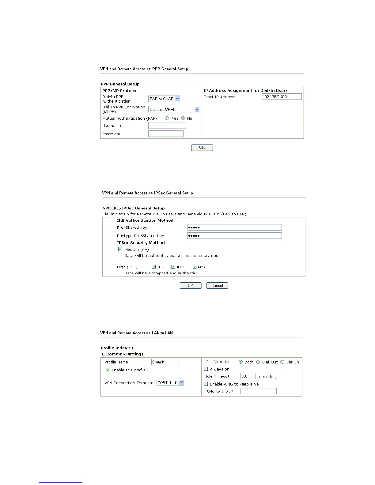 Address, IKE Authentication Method and IPSec Security Method for this Dial-Out
