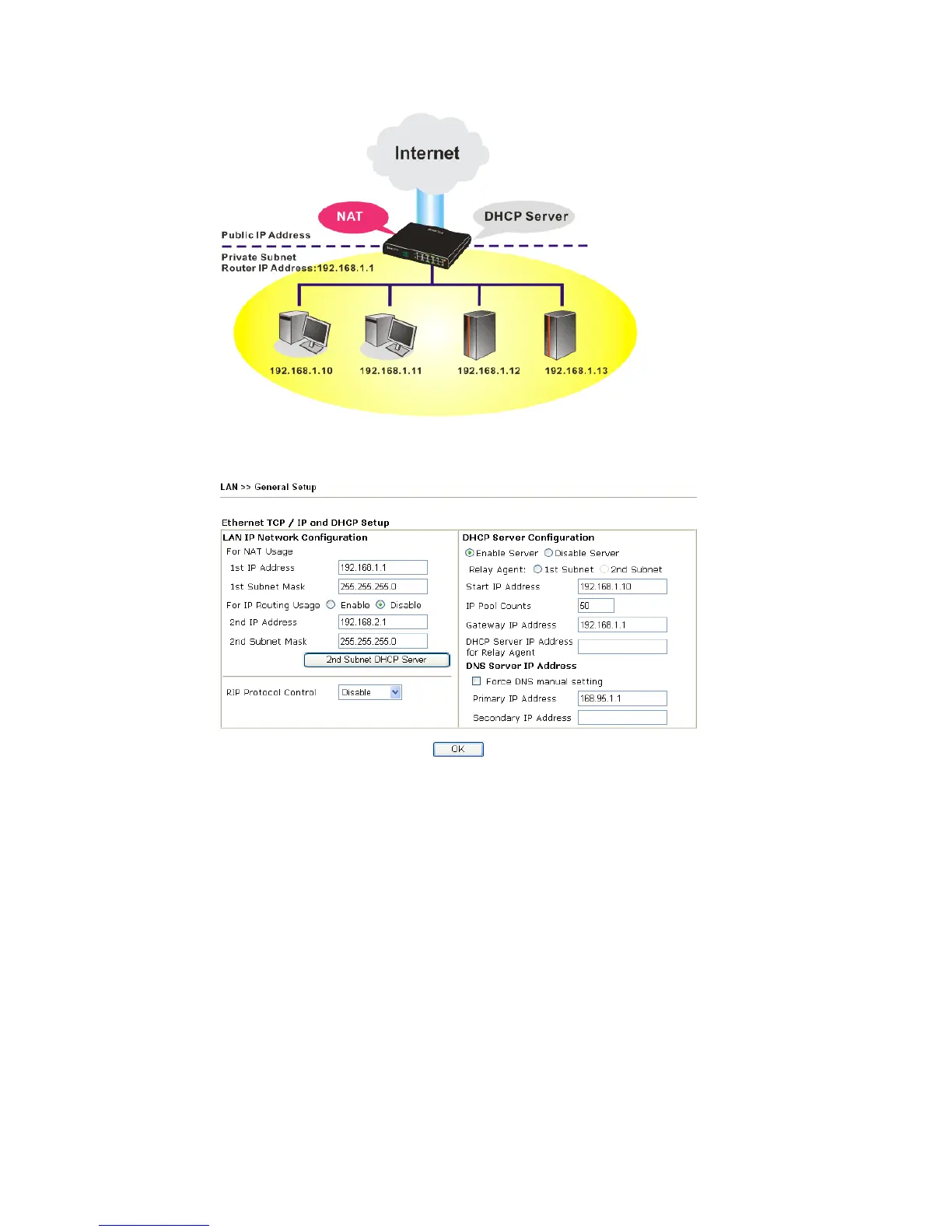 To use another DHCP server in the network rather than the built-in one of Vigor Router, you