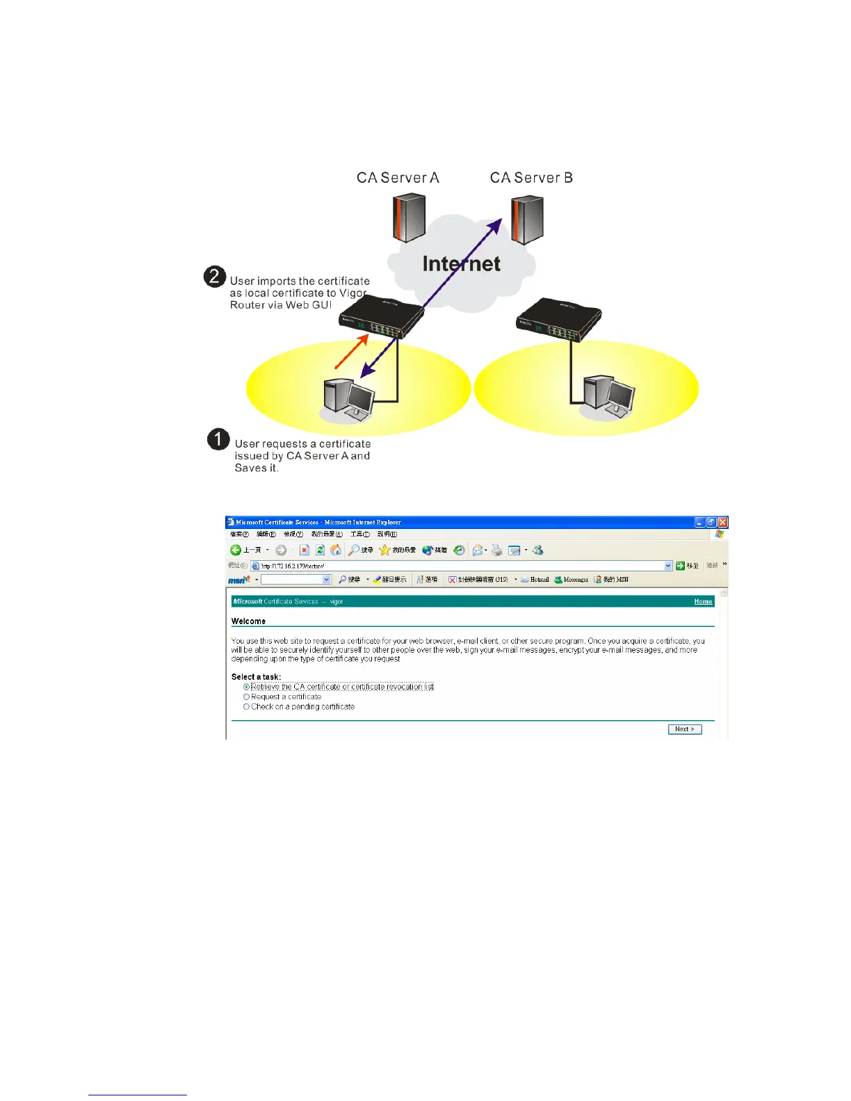 1. Use web browser connecting to the CA server that you would like to retrieve its CA