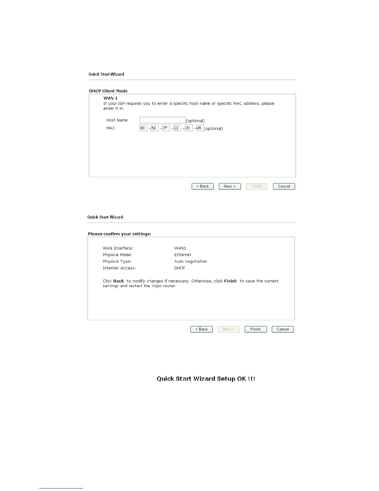 Click Finish. A page of Quick Start Wizard Setup OK!!! will appear. Then, the system