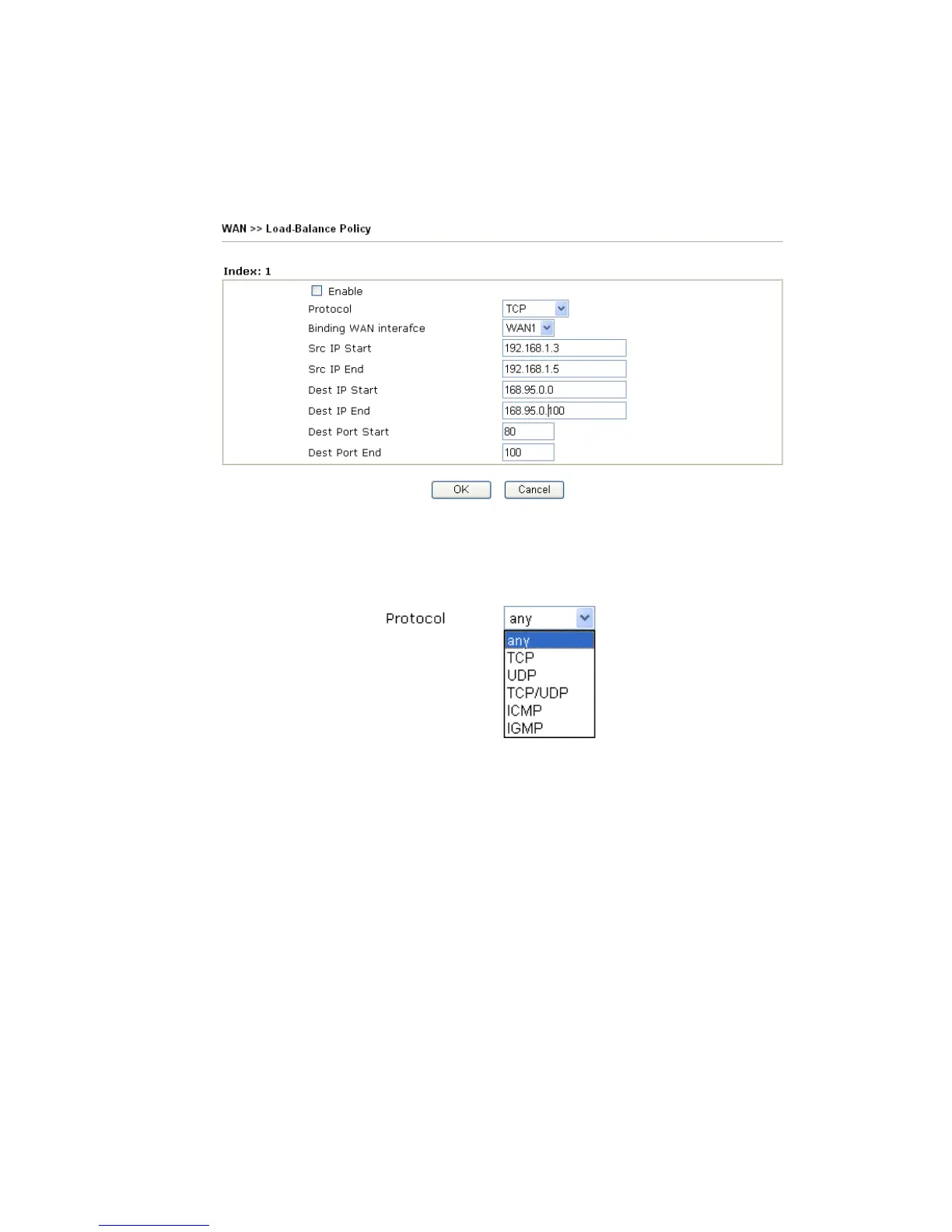 Click Index 1 to access into the following page for configuring load-balance policy.