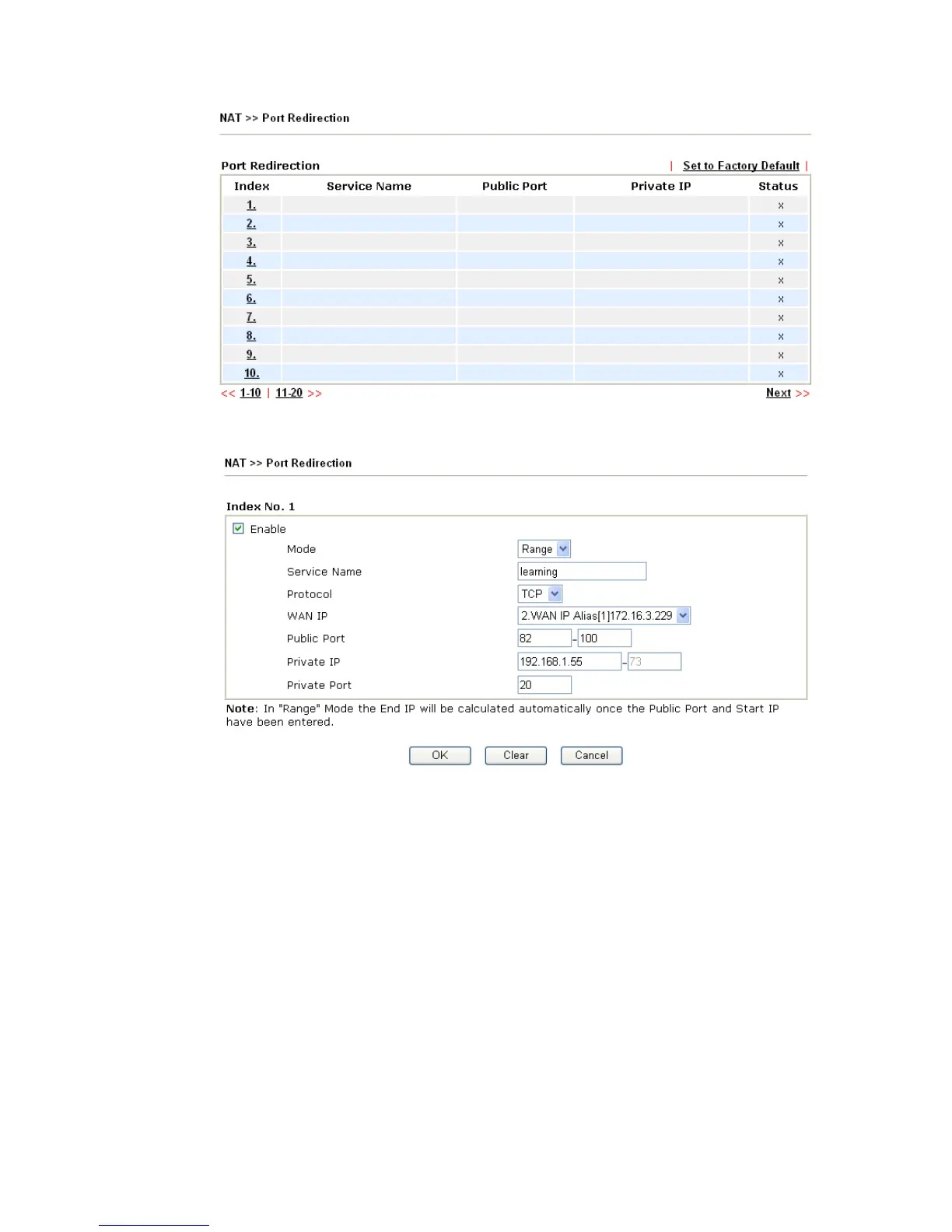 service. If you choose Range as the port redirection mode, you will