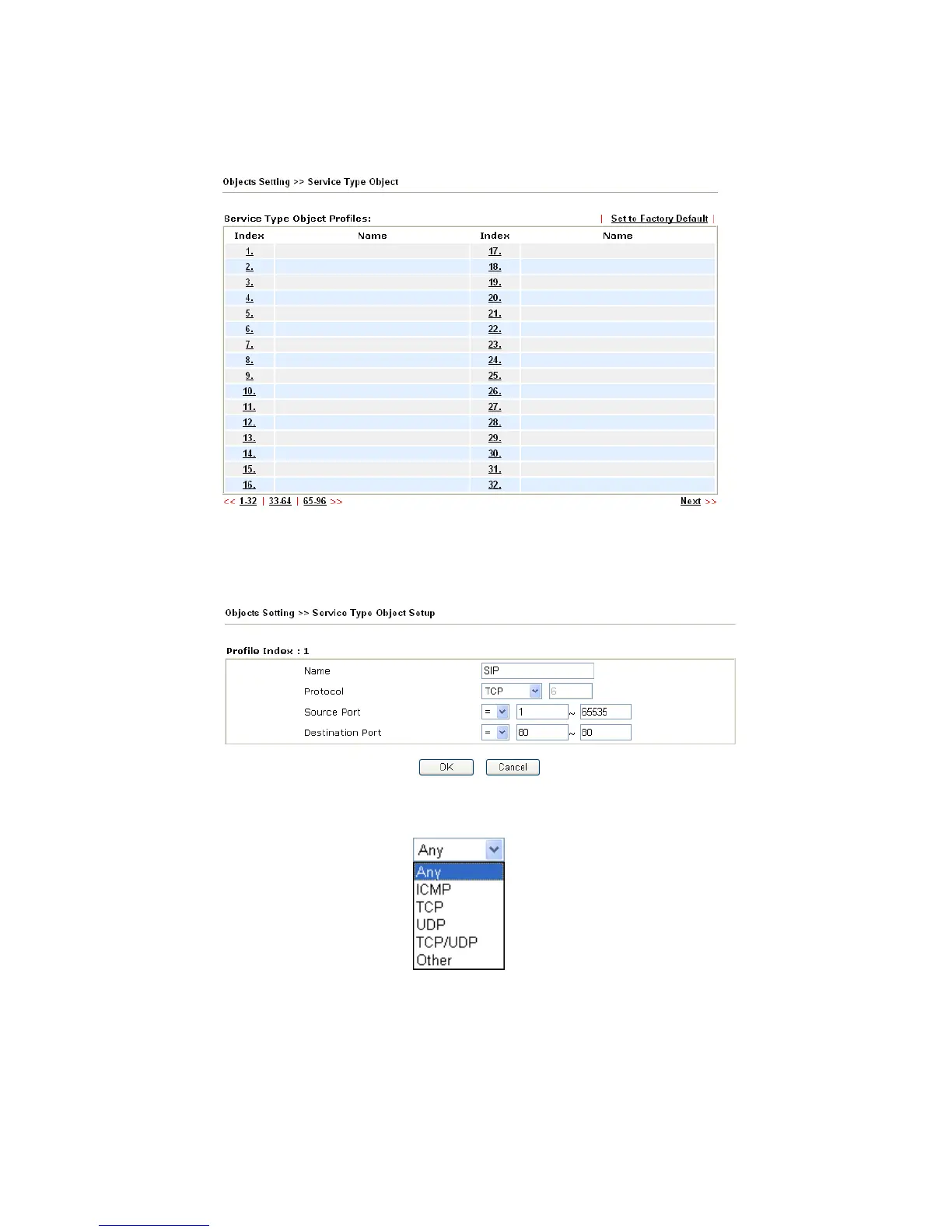 You can set up to 96 sets of Service Type Objects with different conditions.