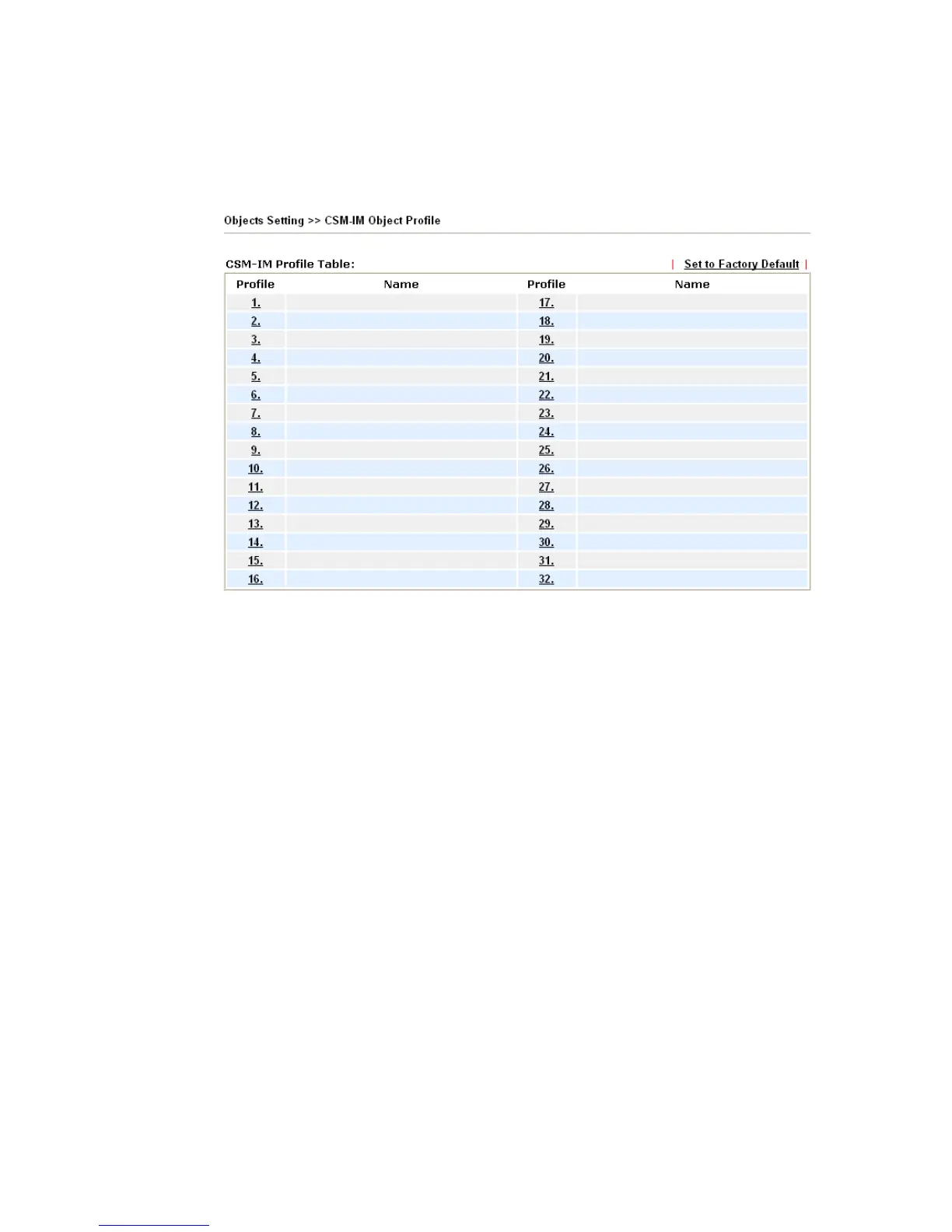 This page allows you to set 32 profiles for Instant Messenger. These profiles will be applied