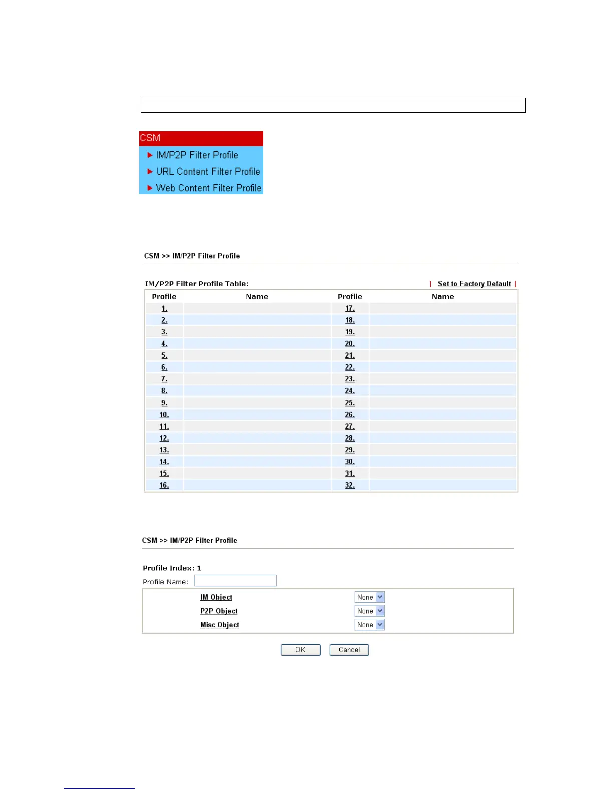 Such profile can be applied in the Firewall>>General Setup and Firewall>>Filter Setup