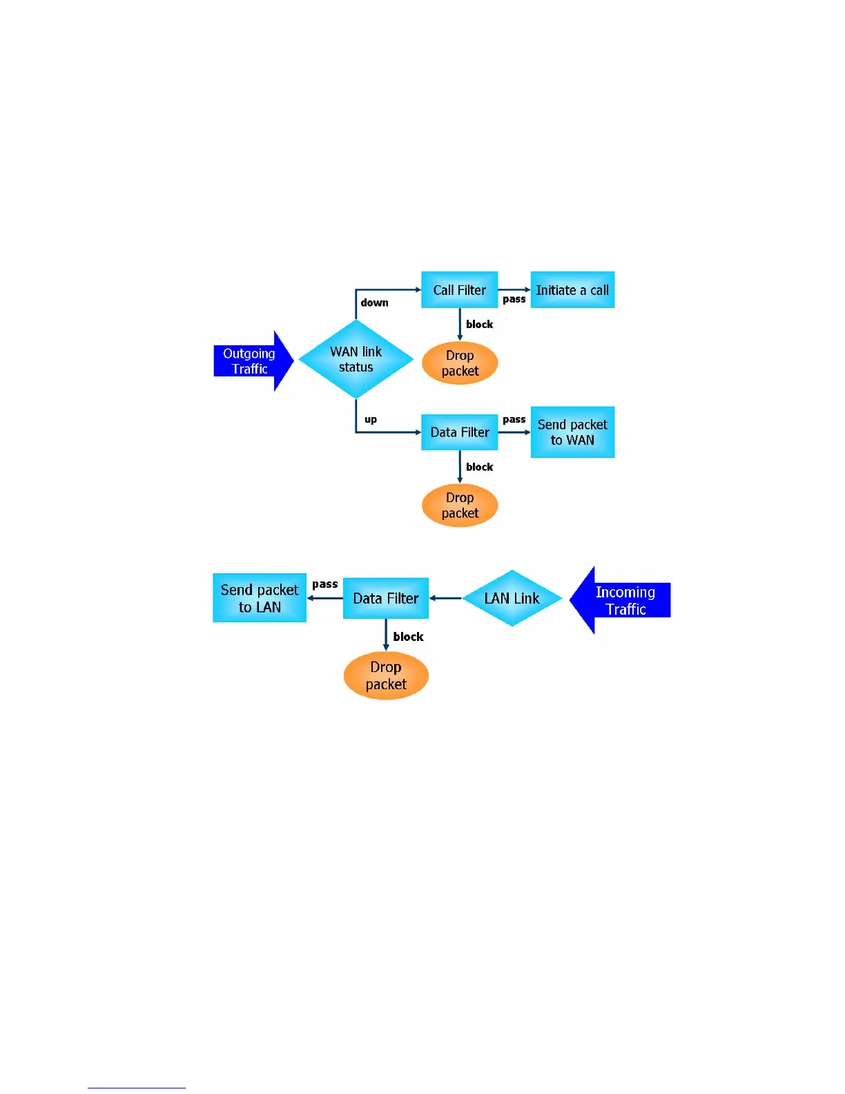 The following illustrations are flow charts explaining how router will treat incoming traffic