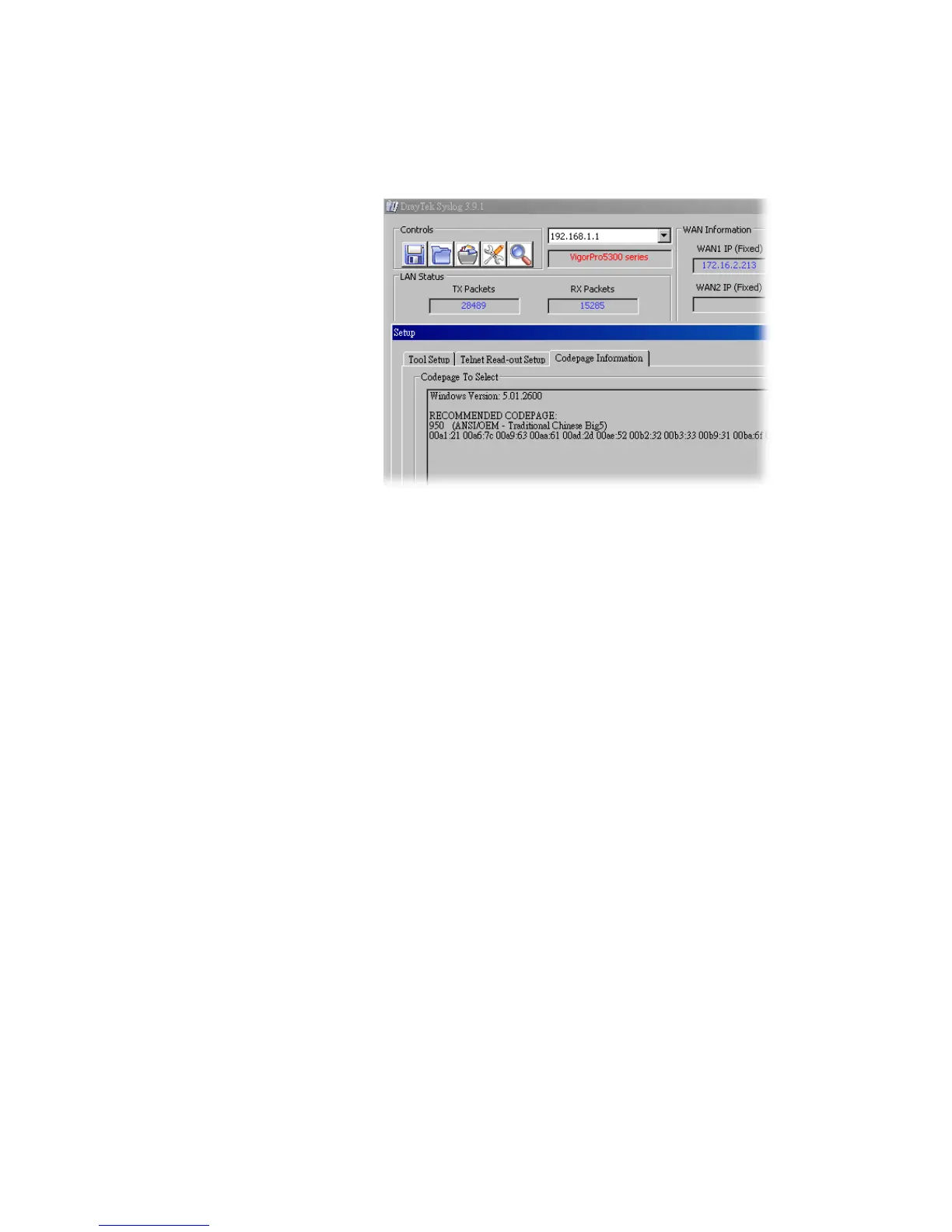 open Syslog. From Codepage Information of Setup dialog, you will