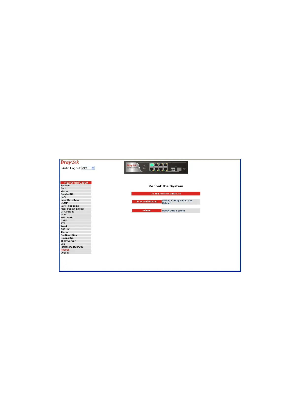 Reboot the switch. Reboot takes the same effect as the RESET button on the front panel of