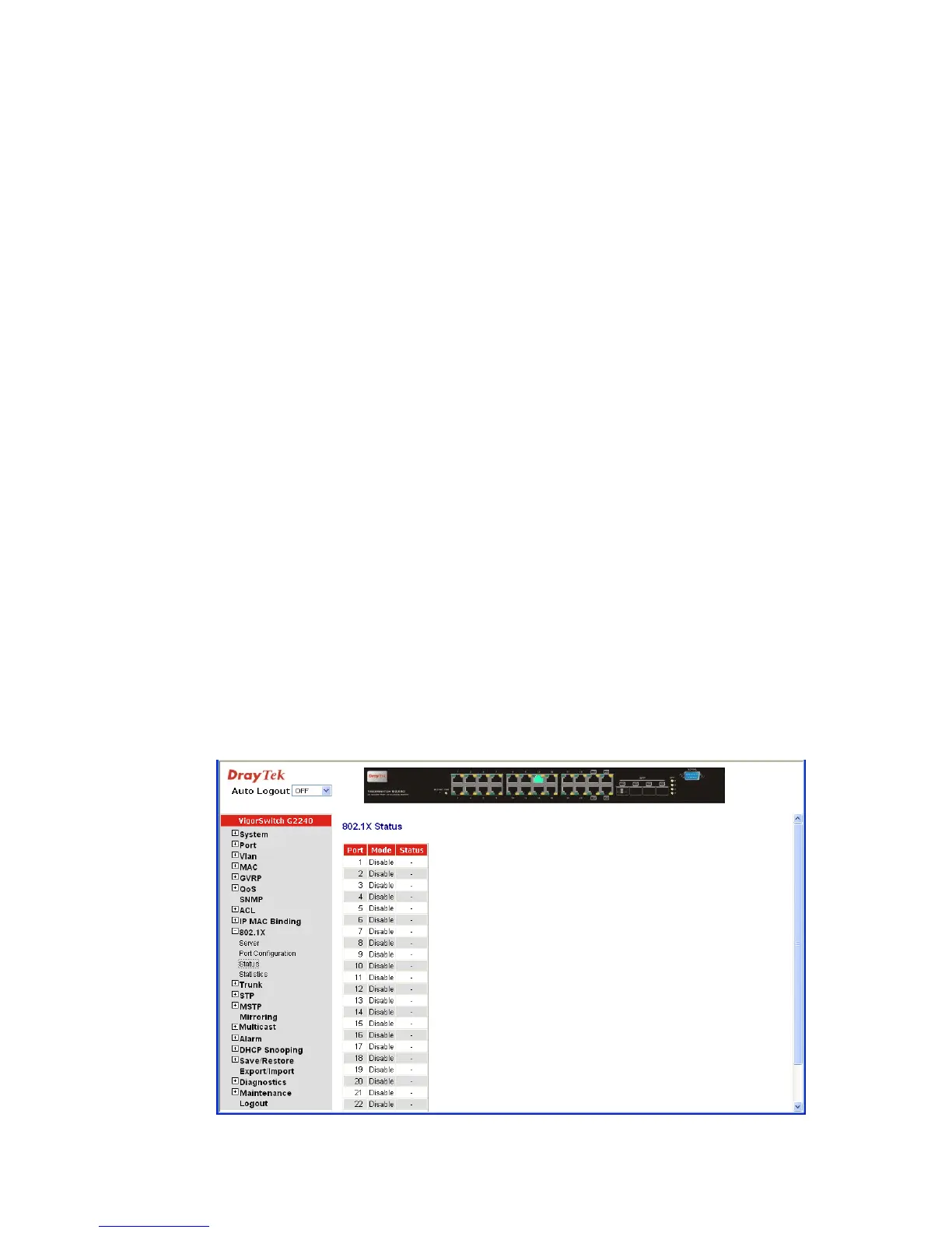 Show the each port IEEE 802.1X authentication current operating mode and status.