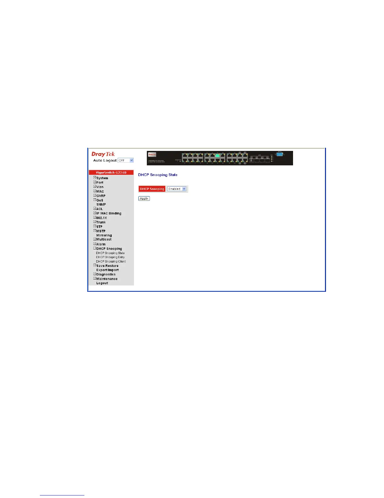 DHCP Snooping: Set to disable or enable the DHCP snooping function on the