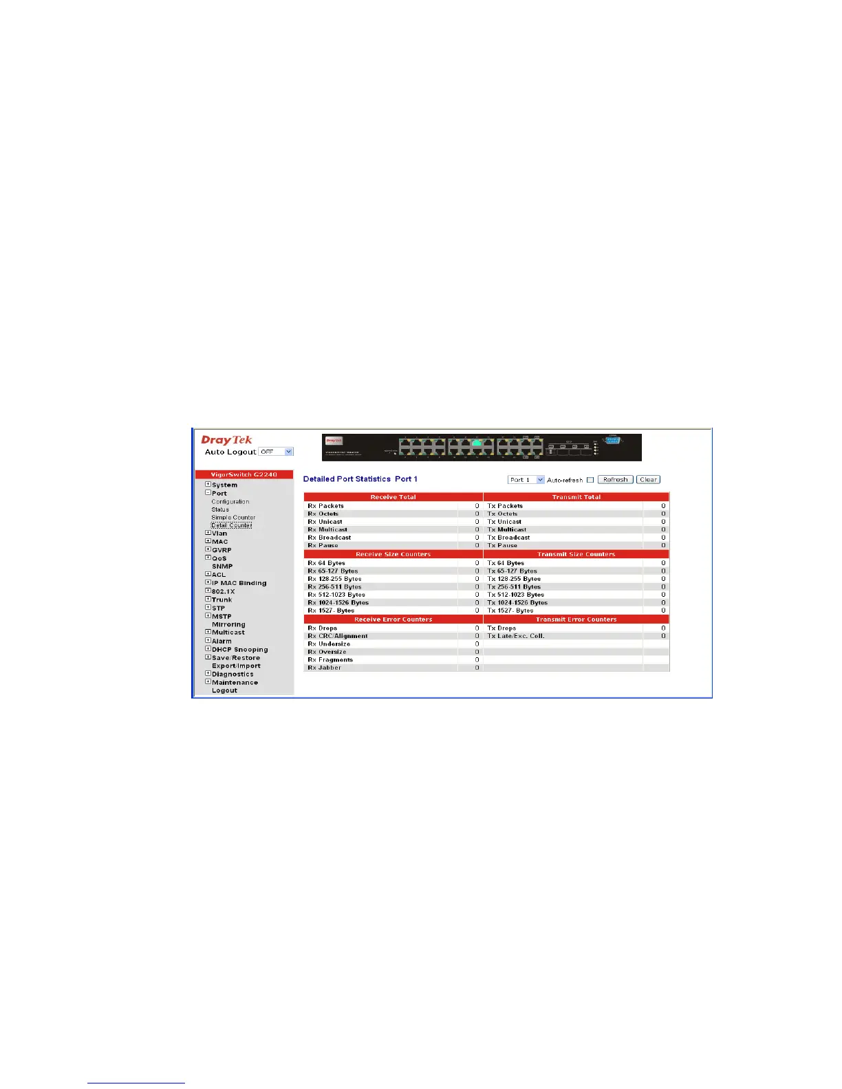 Display the detailed counting number of each port’s traffic. In the following figure, the